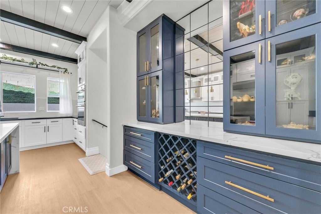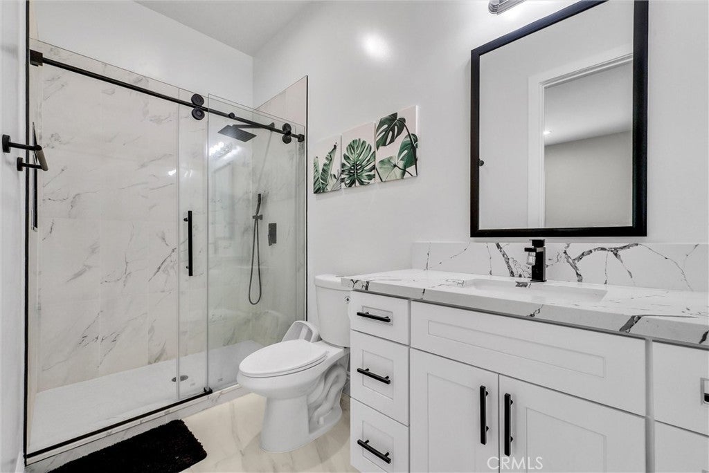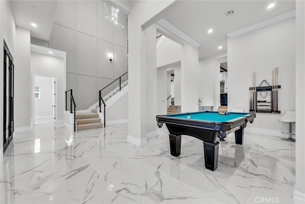 This gorgeous Mediterranean home is just two years old and sits at the end of a quiet cul-de-sac on a hillside lot with great views. Every bedroom has a private ensuite! The property has great curb appeal, with a landscaped front yard, a gated paver driveway and no front-facing garage. Inside the ornate double front doors, you'll find a dramatic foyer with soaring ceilings, marble floors, custom millwork and lots of natural light. Beyond the parlor & formal dining room, the kitchen & living room anchor the rear of the floorplan. The gorgeous chef’s kitchen features Shaker cabinetry, pro-grade stainless appliances, a granite slab backsplash and a massive quartz-topped island with a waterfall edge and seating for a crowd. There’s also a beverage center, family drop zone and lovely gold fixtures – no detail was overlooked here! The main level includes two large guest rooms – each with attached bathrooms. Perfect for in-laws or visitors! Head upstairs to find the laundry room, a BONUS living room and the rest of the bedrooms. The isolated primary bedroom boasts a spa-like ensuite with a custom walk-in closet, a W/C, his&her vanities, a frameless glass shower and a free-standing soaking tub. (It's 5 bedrooms and 6 bathrooms, and the upstairs bonus space can be converted to a bedroom) There are three guest rooms on the upper level – one even has a private balcony with amazing views! All guest rooms also include a stylish ensuite with all the same high-end materials found throughout the rest of the home. Outside, the backyard backs up to a retaining wall, but the property line extends all the way up the hill, offering room for your garden, playscape or future pool. Don't forget about the 3-bay garage, with epoxy floors and tons of storage space. This beautiful home is zoned to award-winning Walnut schools (all within 1.5 mi), with numerous hiking trails close by, too. There are countless shopping & dining options just 5 mins from your front door, and you can hop on the 60 Fwy in no time at all! You must come see this nearly-new MOVE-IN-READY home in person!