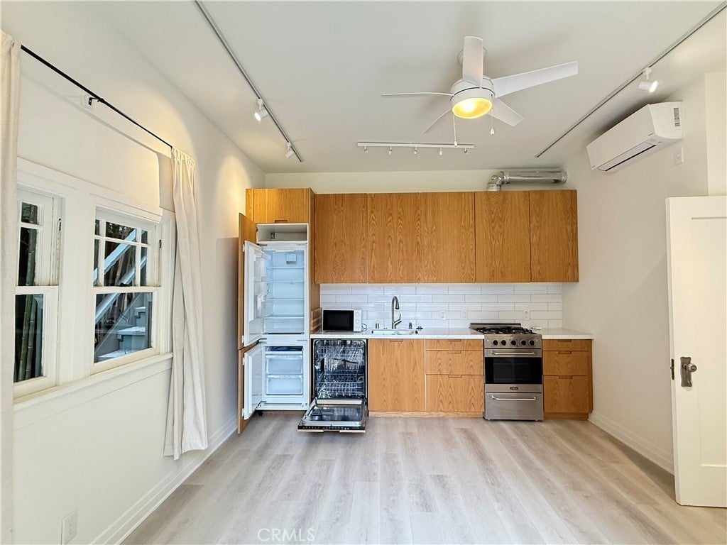This peaceful, quaint apartment community, with three units in the front building and a separate house in the rear, offers a lush oasis in the heart of Venice! This beautiful 1-bedroom, 1-bath, lower rear unit, has been transformed into a bright, luxurious retreat with all the latest conveniences that include a spacious bathroom with radiant floors, designer kitchen with white oak cabinets and integrated appliances. The outdoor firepit with plentiful seating and gas grill for those backyard barbecues are just a few amenities available for your enjoyment. Laundry onsite shared with one other unit. Street parking only. Pet okay. Just a few blocks away from the beach, shopping on Abbot Kinney, dining on Rose Avene, and the historic Venice Canals, you will want to call this paradise your home! Come tour other available units.