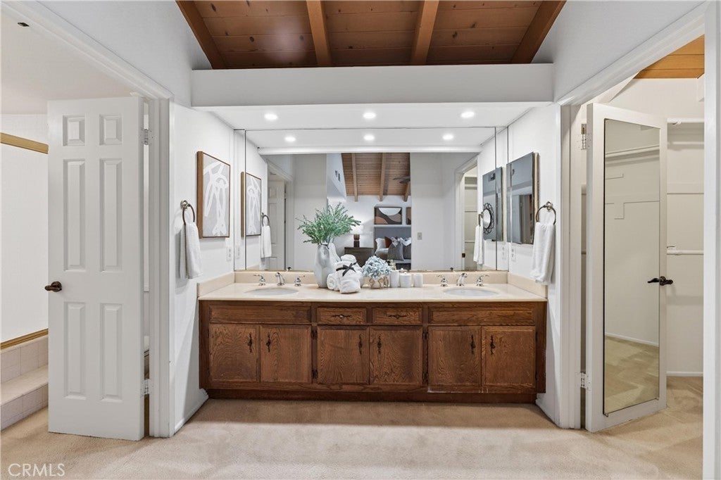 A rare find within the prestigious, guard-gated community of Fairway Village—513 Pebble Beach offers the privacy of a detached home, a highly sought-after feature in this neighborhood. With 2,373 square feet of spacious living, this four-bedroom, three-bath residence presents an exceptional opportunity to personalize a timeless floor plan with your own modern touches. The inviting entry opens to soaring vaulted ceilings and expansive windows that fill the home with natural light. The open-concept living and dining areas flow seamlessly into a well-sized kitchen and adjacent family room—perfect for gathering and entertaining. A highly requested feature, the downstairs bedroom and full bath offer convenience for guests or multigenerational living. Upstairs, the primary suite serves as a private retreat with a generous walk-in closet, balcony, and large en-suite bathroom. Two additional bedrooms provide versatility for family, home office, or creative space. The backyard offers a peaceful setting with expansive patio and a spa jacuzzi that has a soothing waterfall feature, perfect for relaxing after a long day. Thoughtfully and strategically priced, this home takes into account its light renovation potential—offering a chance to refresh and elevate it to your style while enjoying the incredible value of one of the few detached homes within Fairway Village. Residents benefit from 24-hour guard-gated security, lush greenbelts, walking trails, two pools and spas, tennis courts, a clubhouse, and RV parking—all within minutes of top-rated schools, St. Jude Hospital, Brea Mall, and local parks. Detached homes in this community are rarely available—schedule your private showing today and experience the exceptional lifestyle that Fairway Village has to offer.