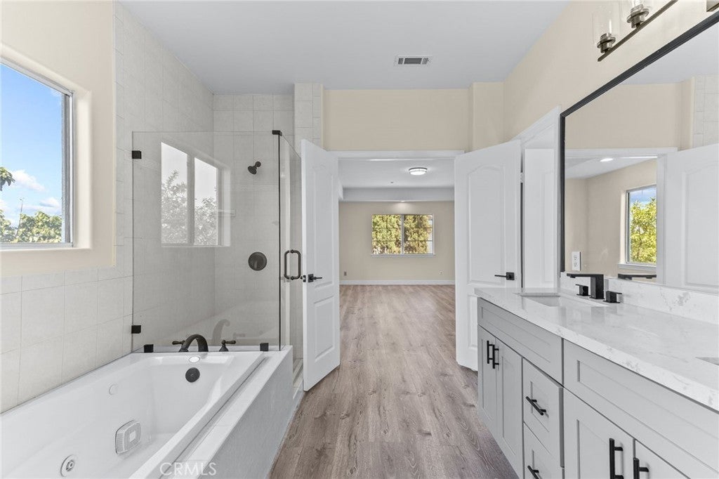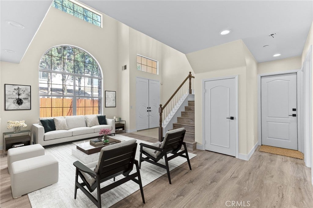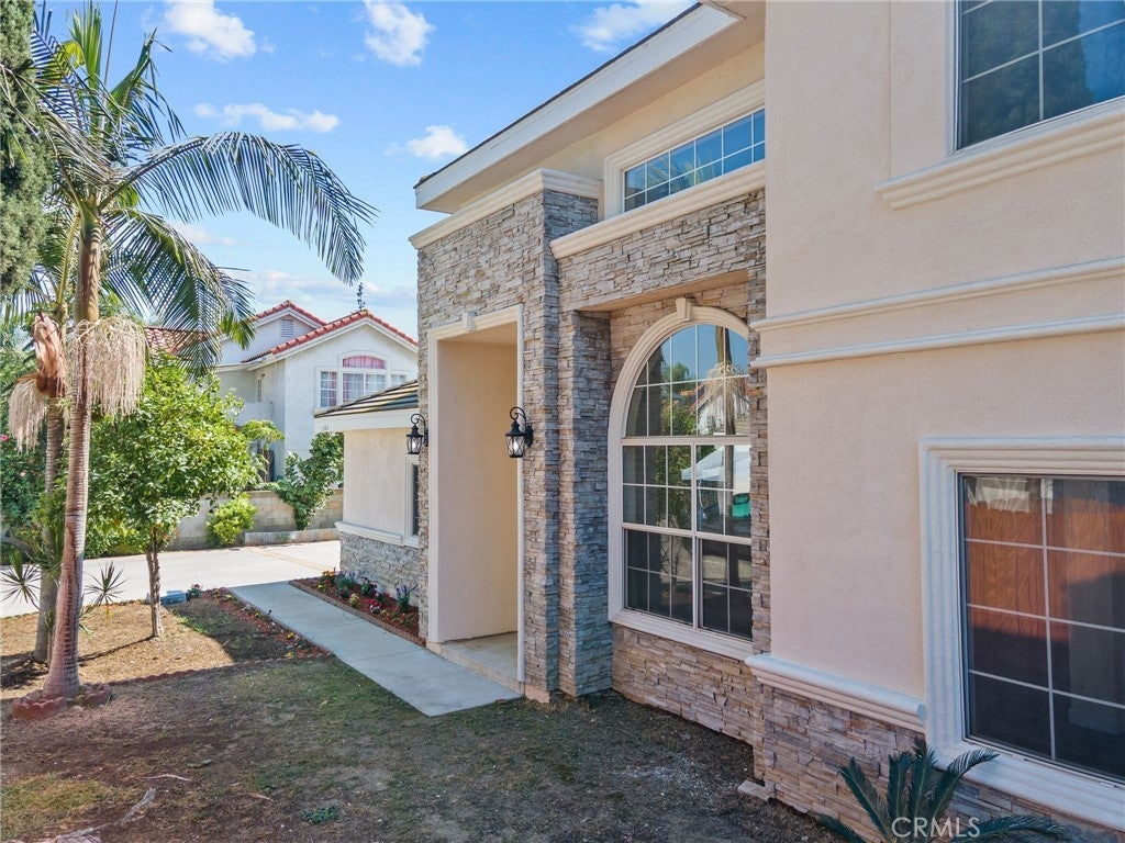 Beautifully updated end-unit detached home located in a private gated community of only four residences! This spacious home offers nearly 2,300 sq. ft. with 4 bedrooms and 4 bathrooms, thoughtfully designed for family living and entertaining. Step through the elegant double doors into an airy open layout with soaring ceilings, abundant natural light. The remodeled kitchen showcases new quartz countertops, new light fixtures, and fresh interior paint. Each bathroom has been tastefully upgraded with new vanities and shower doors. Step outside and enjoy your own backyard oasis surrounded by mature tropical fruit trees—longan, Japanese persimmon, guava, mango, and pomelo—creating a lush and bountiful retreat. Additional features include a convenient main-floor bedroom and bath, three upstairs en-suite bedrooms, extra large master suite, luxury vinyl flooring, an attached 3-car garage plus 2 guest parking spaces, and low HOA dues. Conveniently located near schools, shopping, and easy access to the 605, 60, and 10 freeways. Experience comfort, privacy, and convenience — the perfect place to grow, relax, and call home. Some photos have been virtually staged for visualization purposes only.
