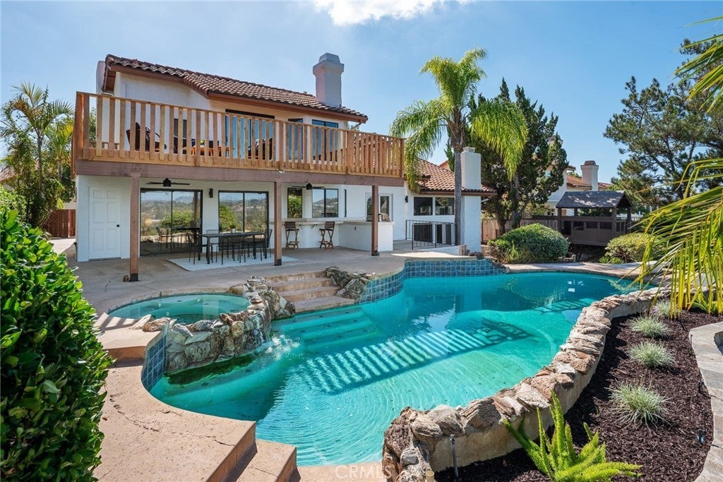 *VIEWS, POOL!* Your Dream Home Awaits! Nestled in the highly desirable Sonata community of South Escondido, 728 Inspiration Lane is a stunningly reimagined split-level residence with sweeping views and the sparkling POOL of your dreams! Step inside to find expansive living spaces filled with natural light, framed by large windows that capture panoramic hillside views. The open-concept design flows effortlessly between living, dining, and entertaining areas, creating an inviting ambiance for gatherings both large and intimate. The updated kitchen is a true showstopper, boasting premium finishes, ample cabinetry, and custom backsplash — a perfect centerpiece to inspire your inner chef. A main floor bedroom and full bath provide versatility and convenience, ideal for guests or multi-generational living. Upstairs, the primary suite offers a true retreat, featuring a private balcony overlooking the rolling hills and beautiful pool below, a spa-inspired bathroom with free standing soaking tub, and generous closet space. Step outside to your personal paradise — a resort-style backyard designed for relaxation and entertainment. Enjoy a large pool and spa, a built-in BBQ area, and a playground set, all set against the backdrop of serene sunrises and golden sunsets. Additional highlights include a 3-car garage, lush landscaping, and the tranquility of a community known for its scenic beauty and peaceful surroundings. This is the one you’ve been waiting for!