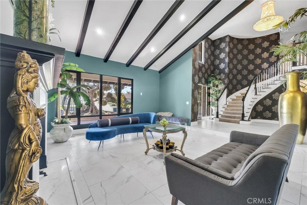 Welcome to this stunning two-story family home in the heart of the highly desired Westmont area of Anaheim. With upgrades and elegant finishes throughout , this turnkey property perfectly blends comfort, luxury, and functionality just ready for you to move right in and fall in love. Step into the formal entry leading to a sunken living room with a marble fireplace, open beam ceiling, and formal dining area overlooking the sparkling pool and spa. The large kitchen features granite counters, wet bar, built-in microwave, double gas ovens, 5-burner gas stove, and dishwasher/trash compactor ideal for any home chef and perfect for entertaining guests. Downstairs includes a bedroom/office with a half bath, while upstairs boasts a grand master suite with double-door entry. balcony, double sinks, separate shower and tub, and access to a 3/4 bath conveniently close to the pool. There are two additional bedrooms, a bonus/media room large enough for a pool table or home theater, and updated full baths with Carrara-honed porcelain and hardwood laminate flooring. Enjoy dual-zone A/C, whole-home, water conditioning and softener system, and smart remote temperature control via Wi-Fi for modern living comfort. Outside, relax or entertain with a large covered patio, built-in double barbecue, and cozy firepit, all surrounded by beautiful landscaped gardens, roses, and topiary trees. The home also offers an attached three car garage with direct access and laundry area, and it’s located just minutes from the 5, 91, 22, and 57 freeways, making commutes easy and convenient plus it’s close to the happiest place on Earth! Additional highlights: Beautiful crystal chandelier and grand staircase Spacious layout for family living and entertaining Beautiful Crystal Chandelier and beautiful Staircase. Solar system ******** LOAN IS ASSUMABLE AT 2.5% FIX RATE WITH 27 YEARS LEFT.....Principal $733,000.00 ******** Buyers to confirm Sq. Ft.