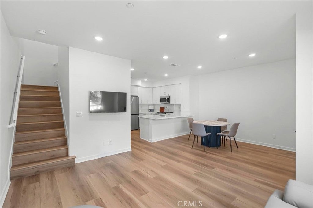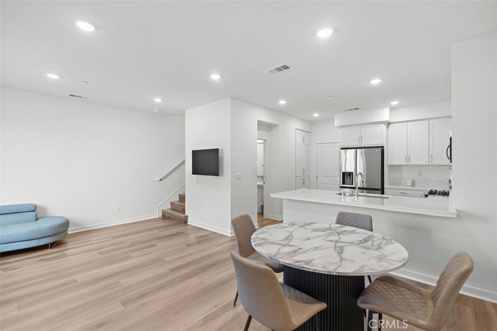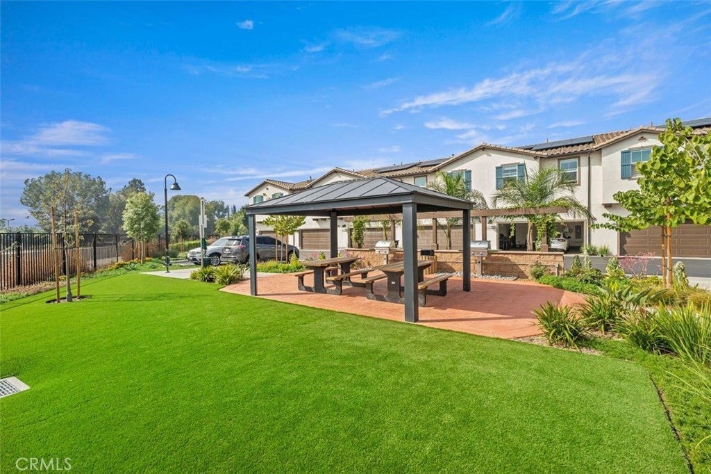This is the premium townhome you’ve been waiting for! Situated in a quiet setting off the main street, this beautifully upgraded 3-bedroom, 2.5-bath home offers the perfect blend of modern style and everyday comfort. Featuring one of the largest fully landscaped patios in the community, this home creates an ideal outdoor space for relaxing mornings or cozy evenings. Inside, the kitchen showcases quartz countertops, white shaker cabinetry, and stylish tile finishes. The home includes a washer, dryer, and refrigerator for added convenience. Additional upgrades include new upstairs flooring, custom window coverings, and a sleek custom shoe cabinet in the garage. The spacious primary suite features two walk-in closets. Paid-off solar panels help reduce energy costs. The HOA includes WiFi service. A two-car garage provides ample parking and extra storage. The community amenities include BBQ areas, a paw park, and open green spaces. Move-in ready and thoughtfully upgraded, this home offers comfort, privacy, and modern living at its best.