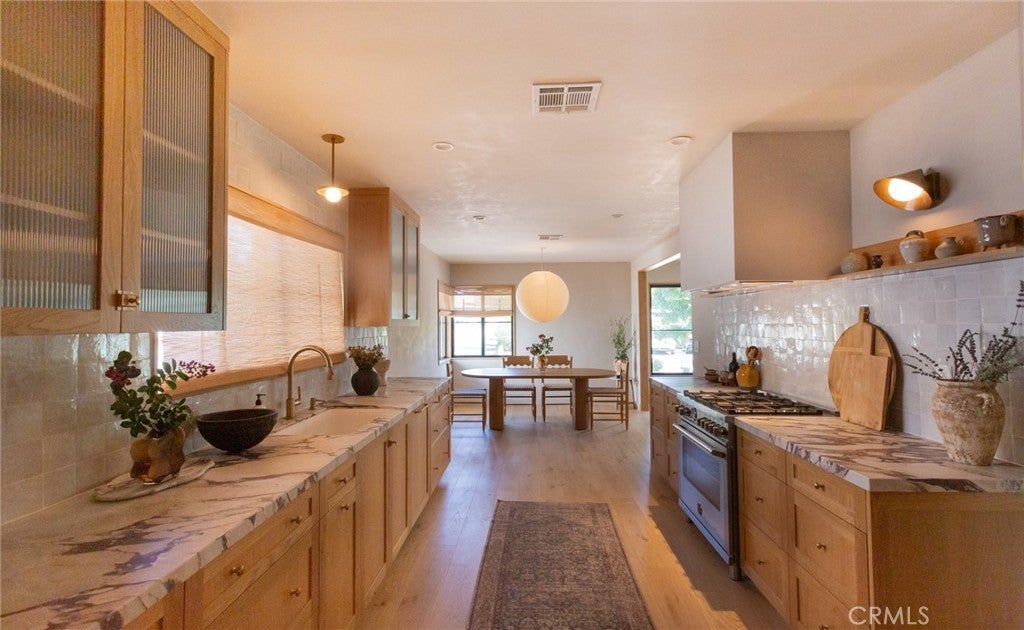 Welcome to The Meadows. Nestled at the end of a peaceful cul-de-sac, this newly renovated residence offers a rare blend of modern comfort, high-end craftsmanship, and natural serenity. With hiking trails just steps away and local parks, markets, and shops minutes from your door, this home is an ideal retreat for families seeking both convenience and connection to nature. Inside, the house has been upgraded for long-term peace of mind, including a new 200-amp electrical panel, a 60-amp garage subpanel, all-new plumbing, HVAC, roof, and energy-efficient windows. The custom white oak kitchen is the heart of the home—featuring solid white oak cabinetry, Calacatta Viola marble slabs, Italian appliances, and matching oak flooring that brings warmth and timeless beauty to the space. This home was crafted with intention, balance, and comfort in mind—a rare opportunity to own a truly curated property in one of Altadena’s most desirable neighborhoods. Features: • Oak engineered flooring throughout • Portola paint finishes • Pinky’s iron front door • Marble tile accent details Kitchen: • Venetian plaster walls • Italian appliances • Calacatta Viola marble countertops • Moroccan tile backsplash • Custom white oak cabinetry • Built-in laundry area Bathrooms: • Handcrafted Moroccan tile • Custom Calacatta Viola marble sink • Venetian plaster finishes This isn’t just a home—it’s a lifestyle. Thoughtfully designed, and grounded in nature. Contact your agent for a private showing, or join us at the open house to experience this Altadena retreat in person—it’s even more breathtaking when you’re here.