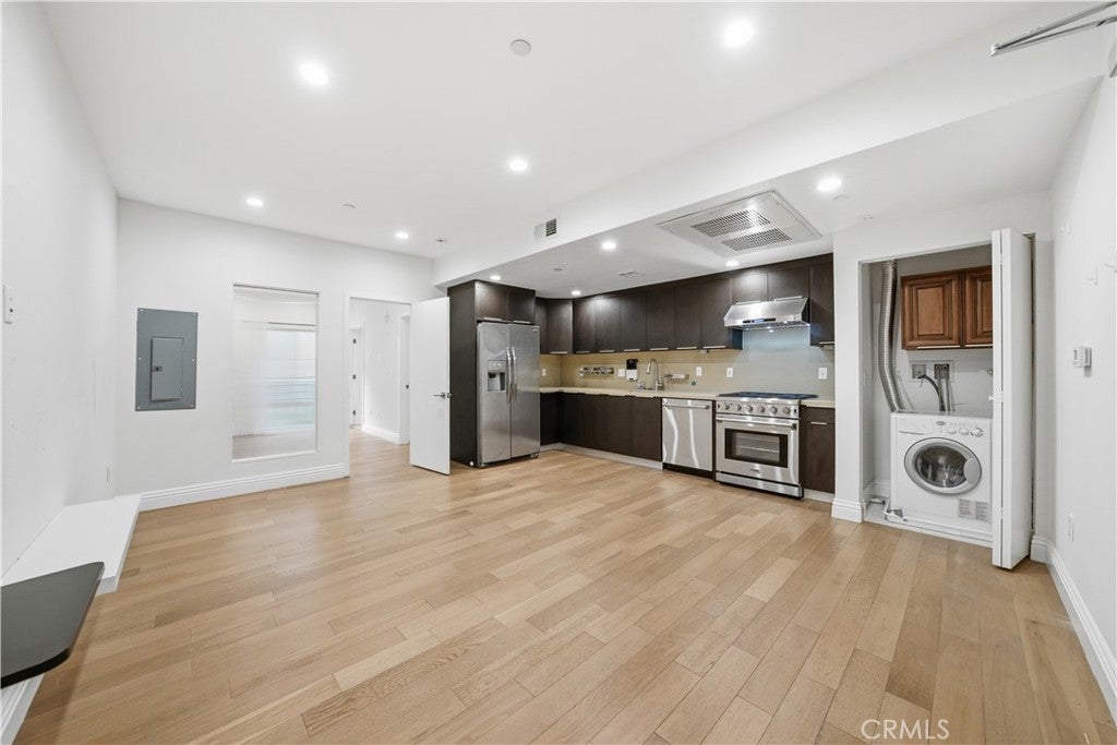 Experience stylish city living in one of LA’s most vibrant and dynamic neighborhoods! This beautifully updated modern condo offers 1 luxurious primary suite . Designed with both comfort and functionality in mind, the open-concept layout seamlessly connects the living, dining, and kitchen areas, creating the perfect space for entertaining or everyday living. The sleek, upgraded kitchen features stainless steel appliances, quartz countertops, and contemporary cabinetry that complement the home’s modern aesthetic. Additional highlights include recessed lighting, central air and heat, in-unit laundry. Enjoy peace of mind with 2 secured underground parking spaces and premium community amenities such as a sparkling swimming pool, recreation room, and a secured lobby entrance. Situated in the highly sought-after Koreatown neighborhood, you’ll be just minutes from Downtown LA, world-class dining, shopping, nightlife, and public transit.