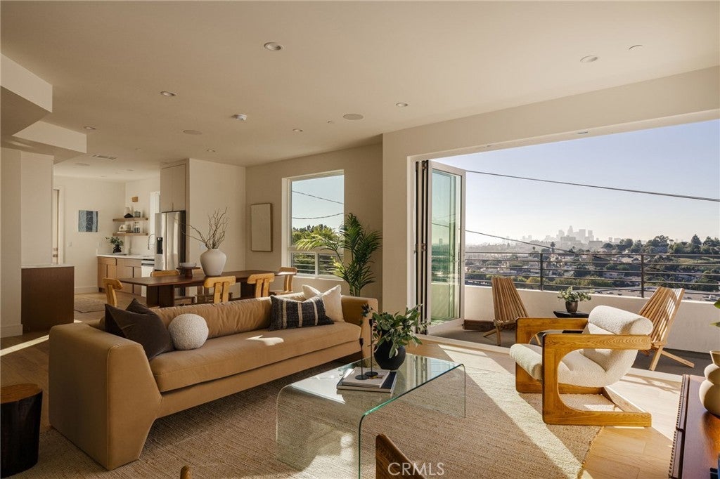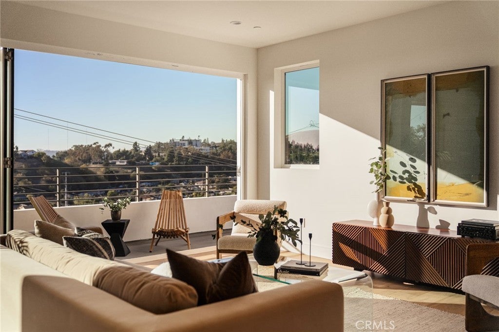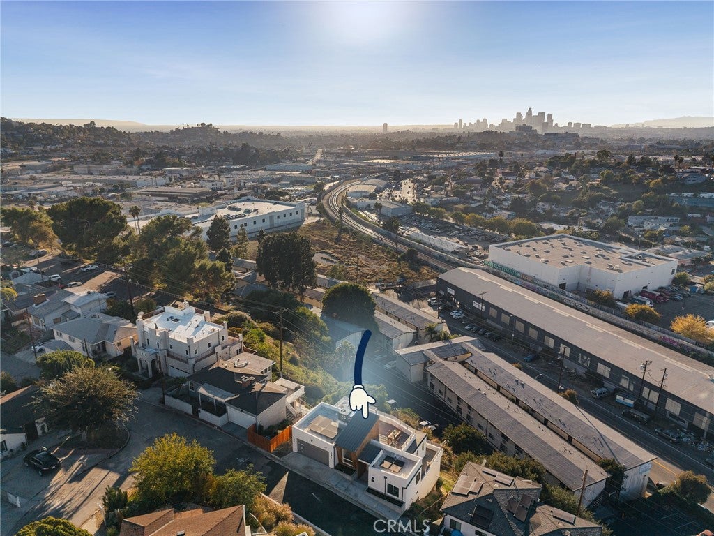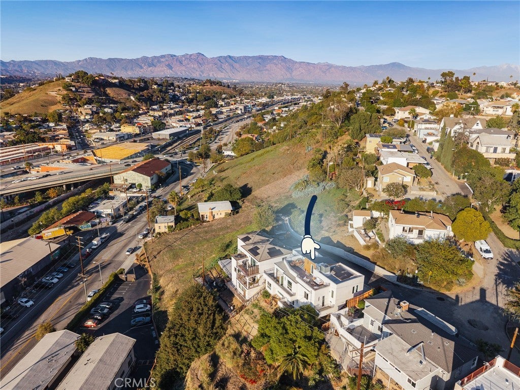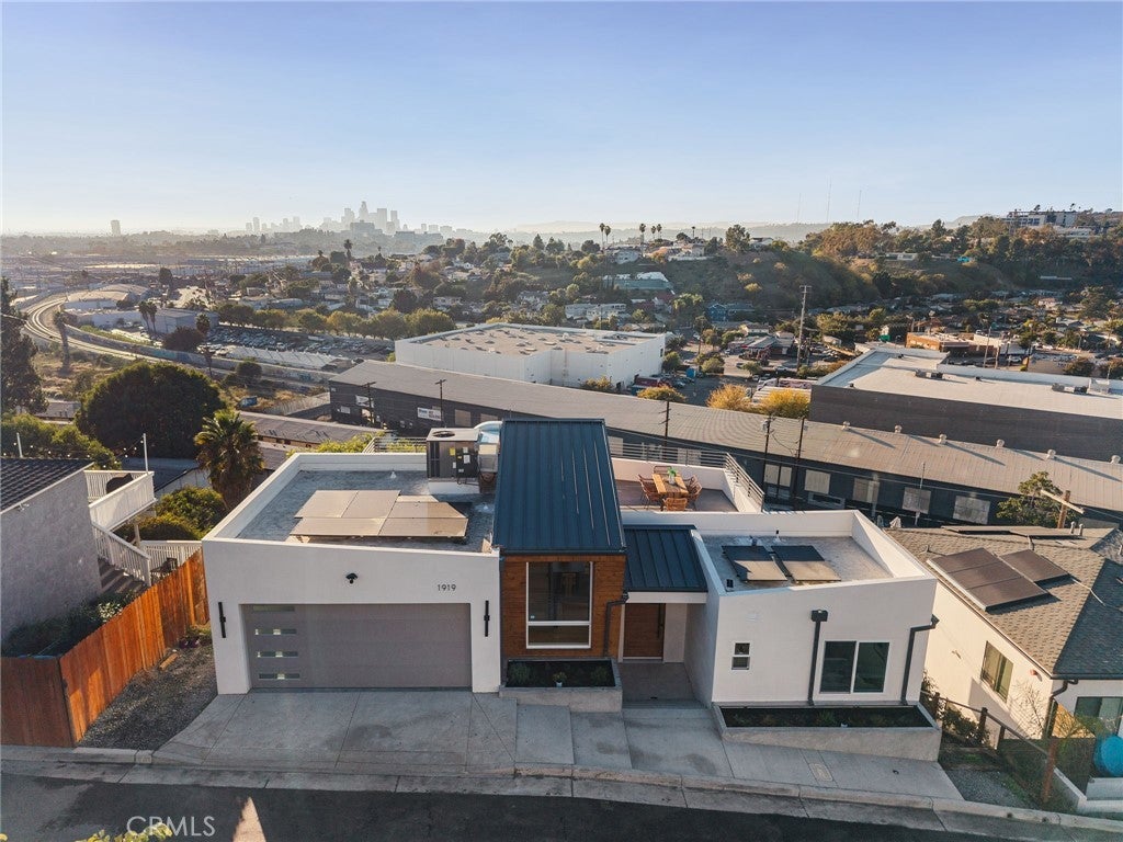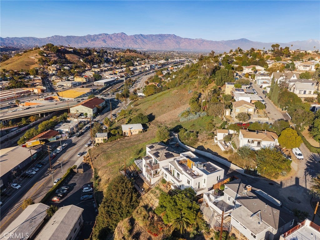 Newly constructed in University Hills, 1919 Seigneur Ave embodies a vision of an angel nestled within the City of Angels. The home feels as if it unfolds its wings onto the hillside, welcoming you with panoramic views of the Downtown LA skyline and San Gabriel Mountains. Inside, stunning city and mountain views become the backdrop from almost every room, grounding daily life in the city's ever-changing skyline. The main level features an airy open floor plan anchored by warm engineered wood floors and trifold doors in the living room that dissolve the boundary between indoors and outdoors, opening to a wraparound balcony that floats above the hillside. Carefully framed openings throughout the home capture curated moments of nature, light, and views. Adjacent to the dining room, the custom kitchen showcases handcrafted maple and white oak cabinetry, a bespoke stove hood, and a full appliance package blending modern function with natural textures. A bedroom and full bath on the main level offer flexibility for guests or workspace. Upstairs, a rooftop deck crowns the residence-a private perch for sunrise coffee or phenomenal sunset views over the city perfect for entertaining. Downstairs, find two primary suites, each walk-in closets and views offering a direct connection to the surrounding landscape. The spa-inspired ensuite bath features a soaking tub overlooking the skyline, a standing shower, dual sink vanity with a backlit mirror. A corridor leads to an outdoor balcony and steps down to the backyard terrain. An attached two-car garage offers direct interior access. Amenities include all brand new systems from the foundation to the roof to new sewer systems, plumbing, new HVAC, dual pane windows, built-in speakers on the main level, new solar panels, rain gutters, etc. Ideally located near Ascot Hills Park, Cal State LA, and minutes from local favorites like Evil Cooks, Lil' East Coffee, Los Dorados LA, Holy Grounds and more. Short drive to DTLA, USC Medical, NELA and offers easy access to freeways and public transit.