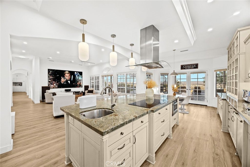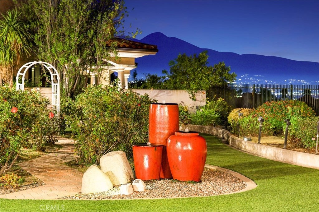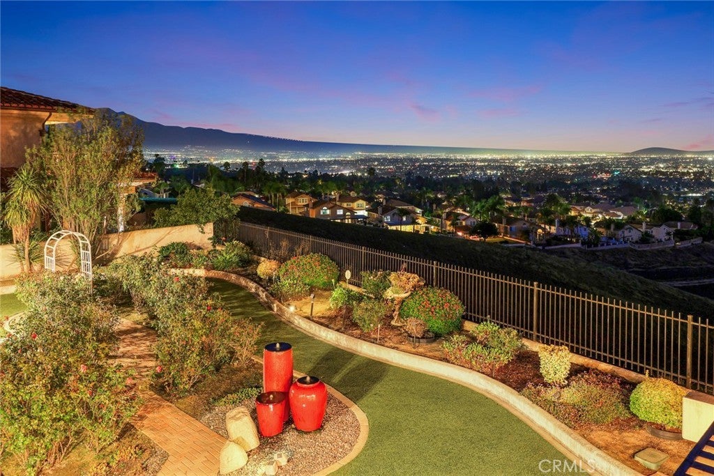 View!Location! Remolded! Welcome to this stunning, custom-built and newly remodeled single-story estate set on a large, pool-sized lot in prestigious Chino Hills. Enjoy 180-degree panoramic city-light and mountain views from nearly every living space. This luxury home features 4 spacious bedroom suites, 4 full bathrooms, 2 powder rooms, and approximately 4,519 sq. ft. of living space on a 15,860 sq. ft. lot. A grand gated front porch opens to an elegant open-concept floor plan including formal living and dining rooms, a separate family room, and a private office. Four fireplaces — located in the master retreat, office, living room, and dining room — enhance the warm ambiance throughout. The gourmet kitchen showcases custom cabinetry, soft-close drawers, granite countertops, a large center island, and high-end stainless steel appliances, opening directly to the family room — perfect for entertaining. The luxurious master suite includes a private sitting area with fireplace, stunning views, a spa-inspired bath with soaking tub, dual shower heads, and his & hers walk-in closets. Outdoor living is equally impressive with approximately 1,000 sq. ft. of covered patio space, a built-in outdoor kitchen and BBQ, and a deck with spiral staircase, ideal for evening gatherings. Additional highlights include a finished 3-car garage with epoxy flooring and attic storage, owned (paid-off) solar panels providing nearly zero-cost electricity, an EV charging station, whole-house fan, and ceiling fans throughout. Located in one of Chino Hills’ most desirable neighborhoods, just 4 minutes to 99 Ranch Market, 5 minutes to Costco, close to freeways, hiking trails, and top-rated schools. No HOA and low property taxes make this turnkey view home a rare find!