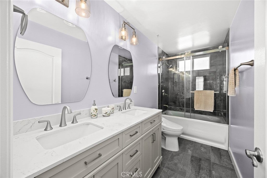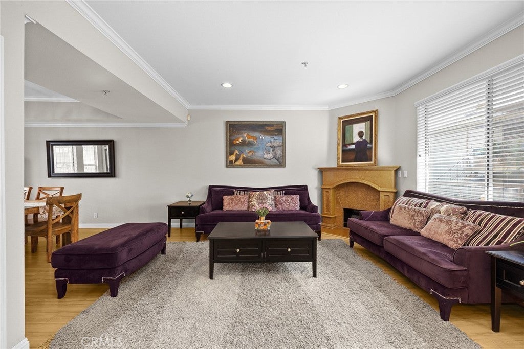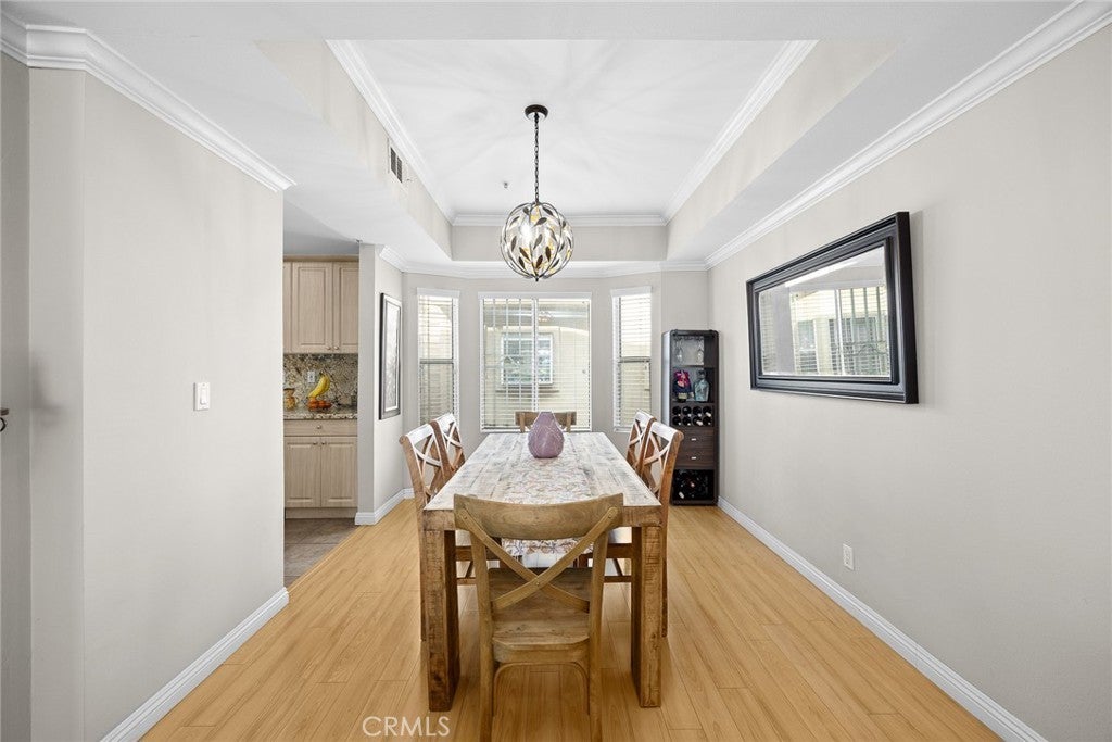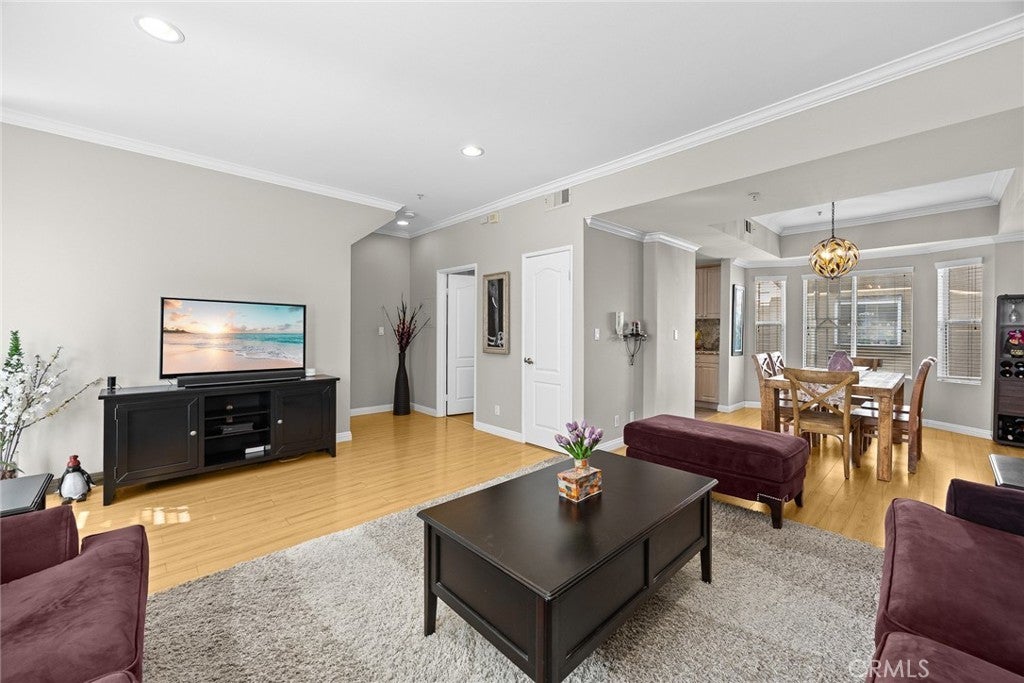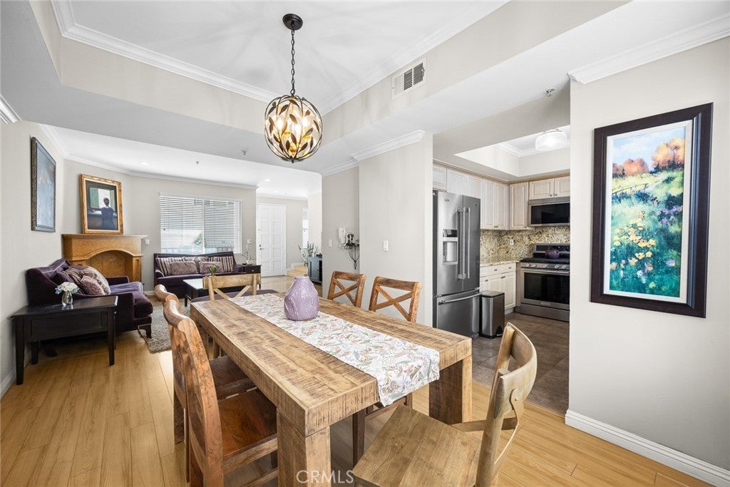 Updated 2 suites, 2.5 bath townhouse in Glendale. This bright & airy townhouse offers comfort & style in a highly desirable area of Glendale. The spacious living room features crown molding, recessed lighting & a cozy gas fireplace, with a door leading out to the front patio, offering a simple, bright & green space. Dining room with tray ceiling & crown molding, perfect for entertaining. Updated kitchen includes granite countertops with matching backsplash extending to the cabinetry. Ample light-toned cabinets with silver hardware keep the space bright & modern, complete with stainless steel sink & appliances. A powder room with pedestal sink is conveniently located for guests. A skylight above the stairway fills the stairway & upper level with natural light. Upstairs are 2 bedroom suites. The spacious primary suite features vaulted ceilings & 3 closets, including a walk-in & a mirrored closet. Newly renovated ensuite bath offers dual sinks, a tub-shower combo with a glass enclosure, & beautiful tiled floors. The second suite includes a mirrored closet with organizer, & a recently remodeled full bath. The direct access 2-car garage offers a bonus area for washer, dryer & additional storage space & numerous built-in cabinets, perfect for tools & household items. Other features include: Central air & heat, tankless water heater, wood flooring throughout the main living areas, & tile flooring in kitchen & baths. Minutes to schools, shopping, & The Americana at Brand, with easy access to freeway. A must see!