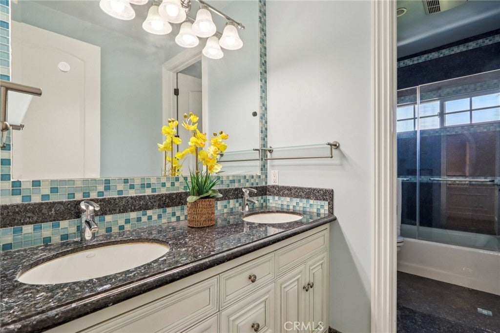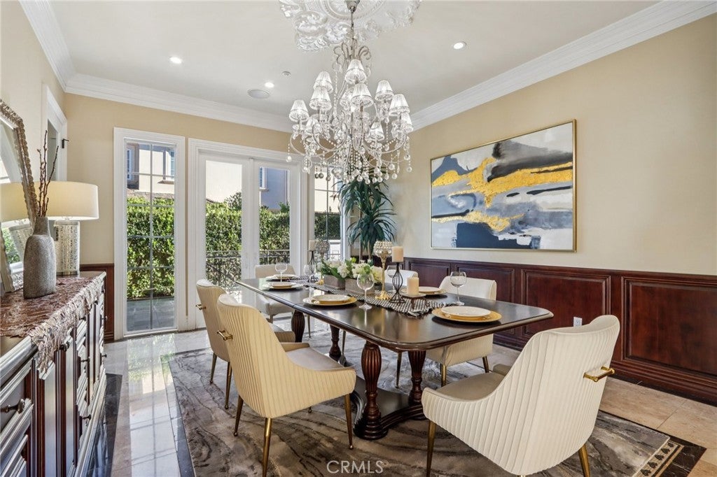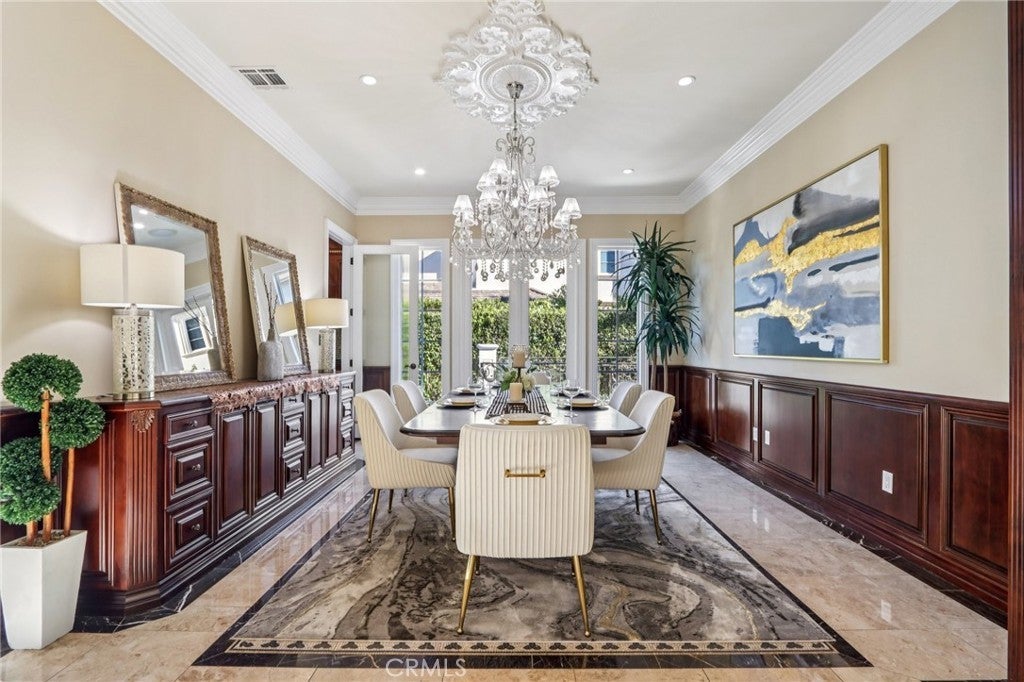 Completely rebuilt in 2008, this elegant Georgian Colonial–inspired home offers timeless style and modern luxury. The grand foyer features a magnificent chandelier, stenciled dome, and soaring 20+ ft ceilings. A formal library with custom cabinetry and fireplace sits to the right, while a beautiful living room and formal dining room—framed by French doors—provide perfect spaces for entertaining. The gourmet kitchen showcases a large marble island, stainless-steel appliances, double ovens, warming drawers, and a full wok kitchen. The adjoining family room offers custom built-ins, a central AV console, and a full bar. Upstairs, the luxurious primary suite includes marble finishes, a steam room, jetted tub, walk-in closet, and an attached his-and-her office with a balcony overlooking the San Gabriel Mountains. A junior suite, two additional bedrooms with a shared bath, and a den complete the upper level. A rare lower level—almost impossible to find in Arcadia—features a dance studio, entertainment room, game room, bar, and an additional suite with its own marble steam shower and private exterior access. The property is finished with a three-car garage and additional guest parking.