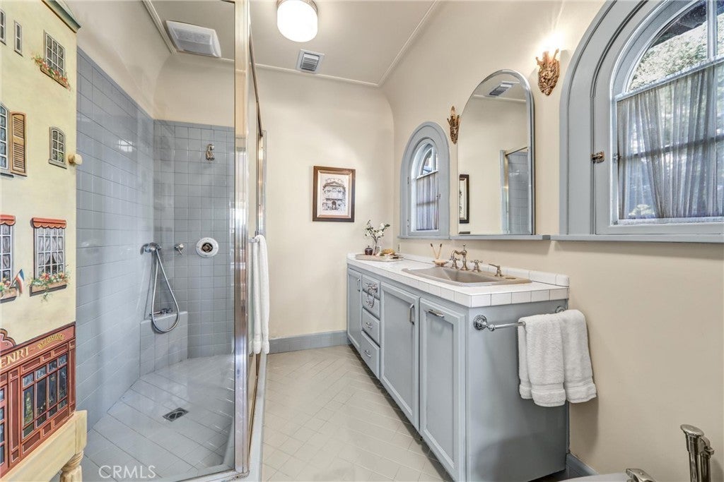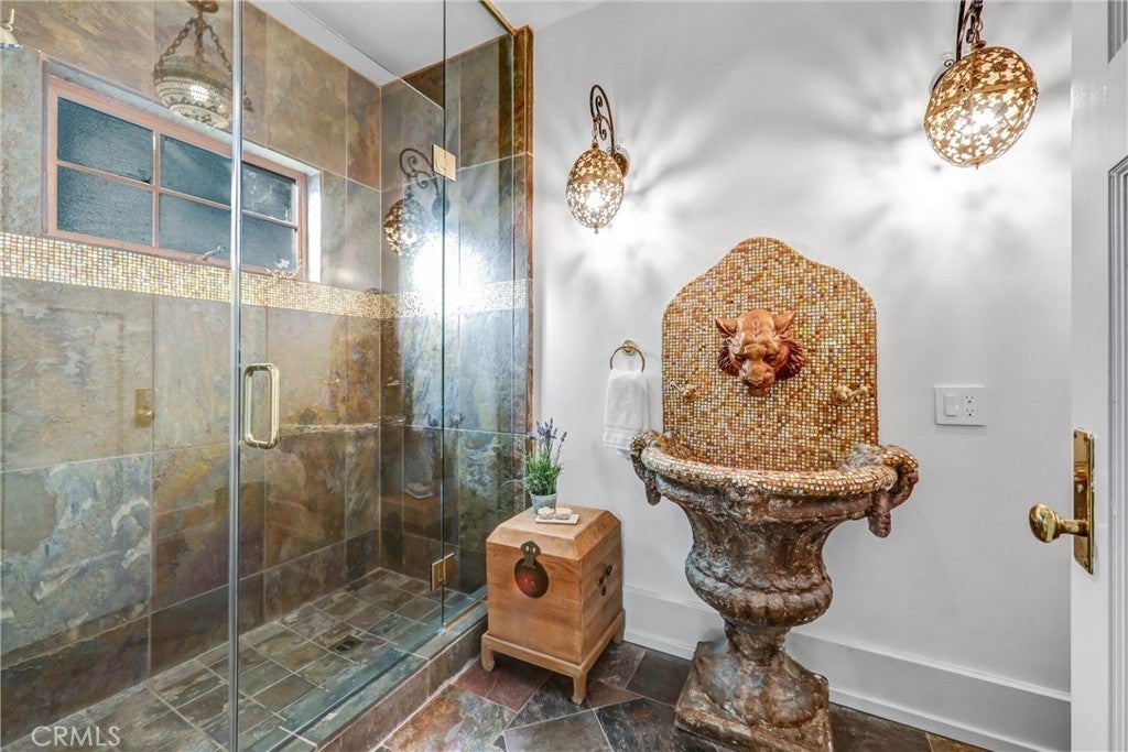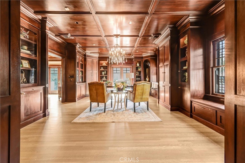 A Mission Revival and Arts & Crafts architectural masterpiece by acclaimed architect Joseph J. Blick, this estate blends timeless sophistication with modern luxury. Set behind secure iron gates in one of Pasadena’s most coveted enclaves, the residence spans approximately 12,000 square feet with 8 bedrooms and 10 baths, thoughtfully crafted for both grand entertaining and intimate everyday living. Surrounded by tall hedges and graceful palms, the impressive façade and manicured grounds evoke a sense of prestige and tranquility. Inside, rich mahogany and oak paneling, Grueby Faience and Batchelder tile fireplaces, and original brass hardware showcase the home’s distinguished pedigree. A dramatic foyer opens to elegant formal living and dining rooms, each enhanced by custom millwork, harmonious proportions, and sunlit interiors. At the heart of the home, the chef’s kitchen features professional-grade appliances, an oversized island, and a well-appointed butler’s pantry—perfect for culinary pursuits or casual gatherings. Multiple family rooms, a stately library or office, a private theater, and a home gym provide versatile spaces for work, leisure, and entertainment. The primary suite is a serene sanctuary, complete with a fireside sitting area, a newly completed spa-inspired bath, and generous walk-in closets. Additional bedrooms include ensuite baths and custom finishes, ensuring comfort and privacy for family and guests. Outdoors, resort-style living unfolds across expansive covered patios, lush gardens, and a sparkling pool and spa. A tranquil koi pond, wraparound balcony, and multiple pavilions enrich the landscape. A separate guest house and ample parking complete this exceptional estate. Moments from The Langham, South Lake Avenue’s boutiques and dining, and Old Town Pasadena, the property beautifully balances privacy, prestige, and convenience. Elegant. Grand. Unforgettable. More than a residence—an enduring statement of style, comfort, and sophistication. Per the previous owner, the house underwent reconstruction and restoration both in and outside btn 1989 and 1993, and the full foundation of reinforced concrete was laid beneath the house, conforming the state earthquake mandates.