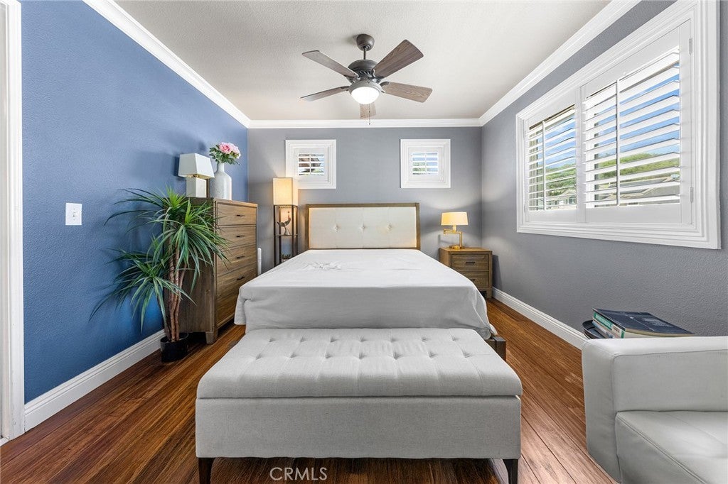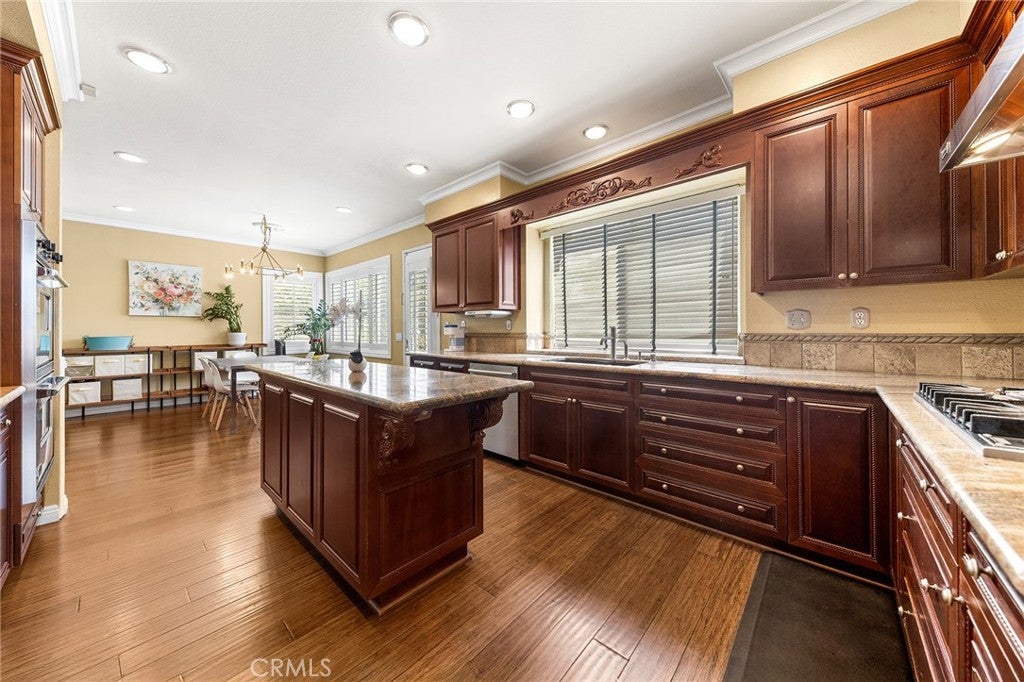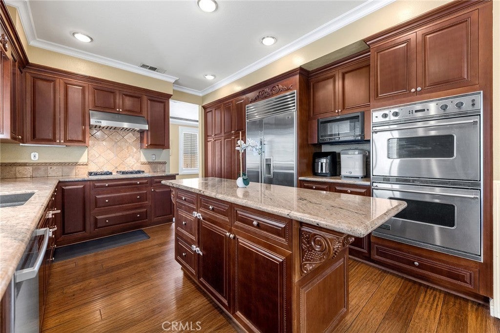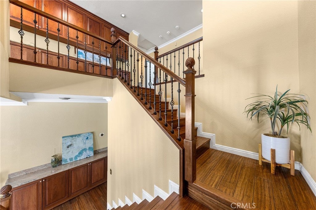 Experience refined living in this meticulously upgraded North Chino Hills residence. A grand entry opens to hardwood flooring, custom plantation shutters, and detailed crown molding that set an elegant tone throughout. The chef’s kitchen impresses with granite countertops, Viking professional appliances, Sub-Zero refrigeration, and rich Cherry wood cabinetry. The adjoining family room, centered around a sophisticated fireplace, provides an inviting atmosphere for both casual and formal gatherings. The main level offers an ensuite bedroom ideal for guests or extended family. Upstairs, the primary suite is a private retreat featuring dual vanities, cast-iron soaking tub, an expansive Travertine walk-in shower, and generous walk-in closet. Three secondary bedrooms and a spacious loft complete the upper level. Additional upgrades include Toto fixtures, attic fan, newer HVAC, and newer water heater. Situated near premier shopping, dining, and top-rated schools, this home delivers luxury, comfort, and an unbeatable location. Move-in Ready. A must-see opportunity!