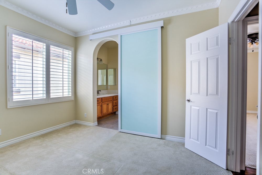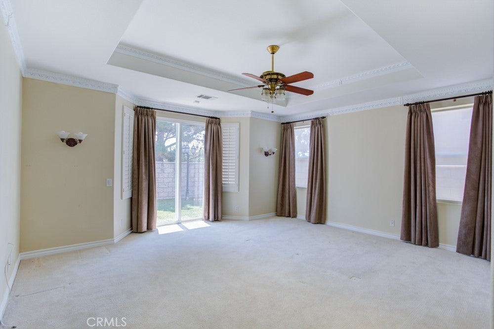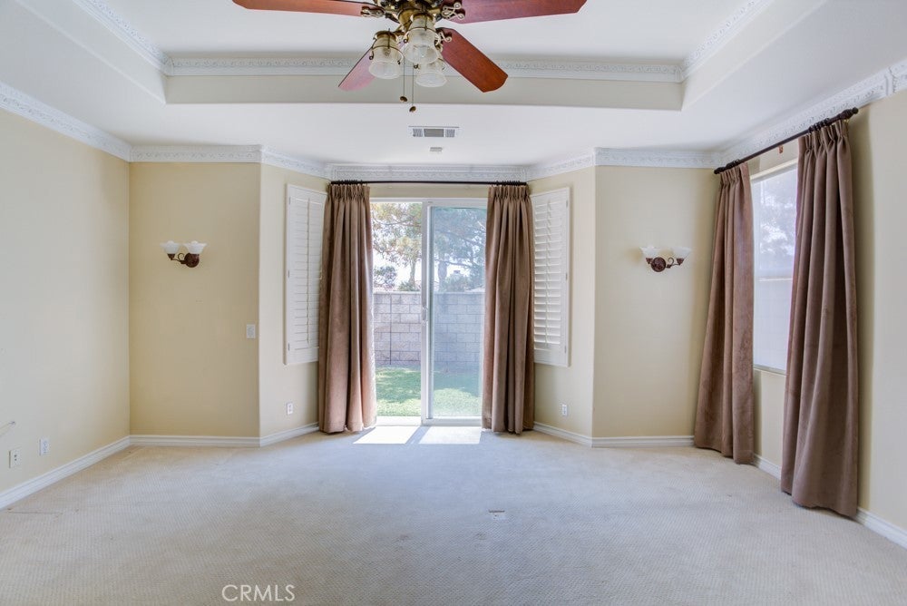 This beautiful home is located in the desirable community of Vista Del Verde and offers 3 beds and 2 ½ baths with a huge loft. Entrance to the home is located on the side to offer extra privacy. The entirety of the home is laced with beautiful intricate crown molding. Wood flooring is present throughout the entire home with carpet for the bedrooms and laminate wood in the loft. The kitchen has granite countertops and is an open concept with high ceilings that pairs perfectly with the adjacent family room. Family room has a custom built-in entertainment system. The home boasts natural lighting throughout the entire house that creates a lovely inviting feeling. Downstairs houses the master bedroom that has a custom-built walk-in closet and a remodeled master bathroom. Each room has ceiling fans and built-in custom closets. Plenty of storage rooms and closets conveniently placed throughout the home that are essential for growing families! There are two AC units, one downstairs and one upstairs to provide optimal cooling and heating. There's also an attached 2 car garage with custom cabinets in the tandem to provide extra storage. Inside the garage is also an electric car charger. Patio is custom built with a barbecue grill to pair with, perfect for hosting parties! The home is located on a cul de sac street, which offers an extra bit of privacy. *Tenants to pay for all utilities *Solar-Powered Home *Pets are not allowed except ESA