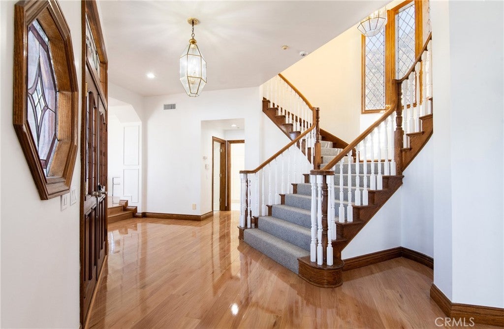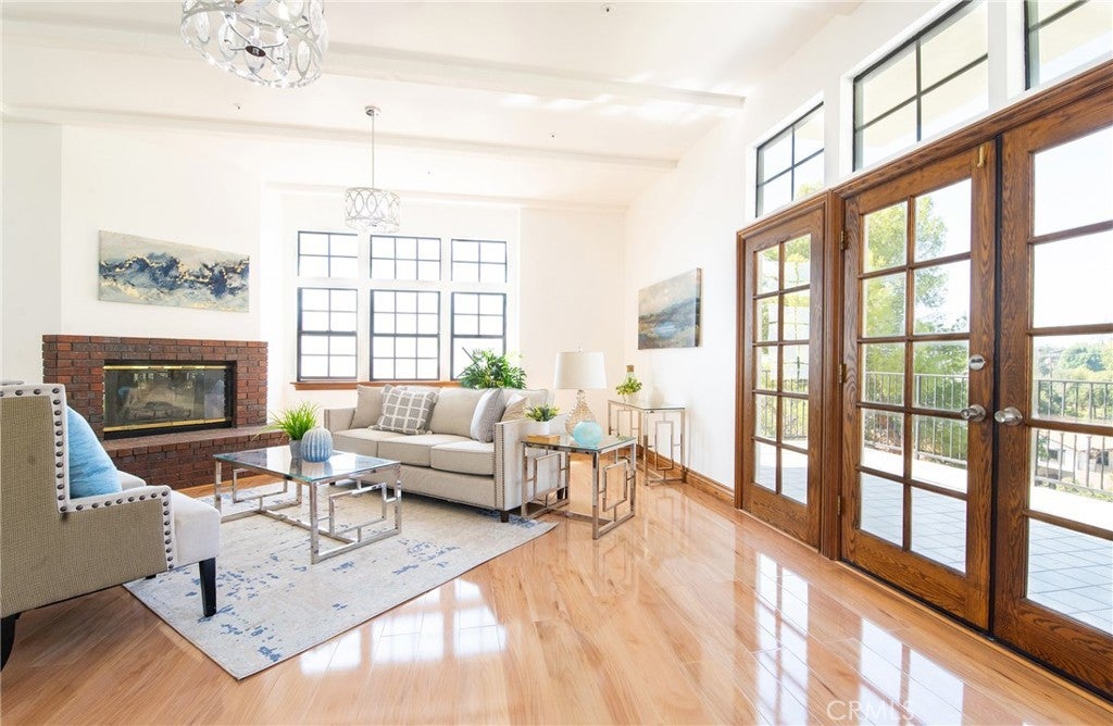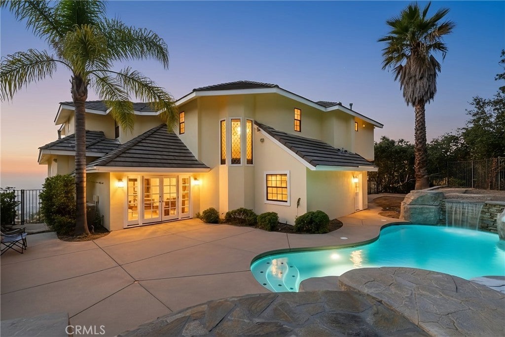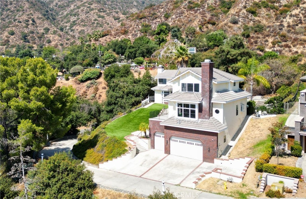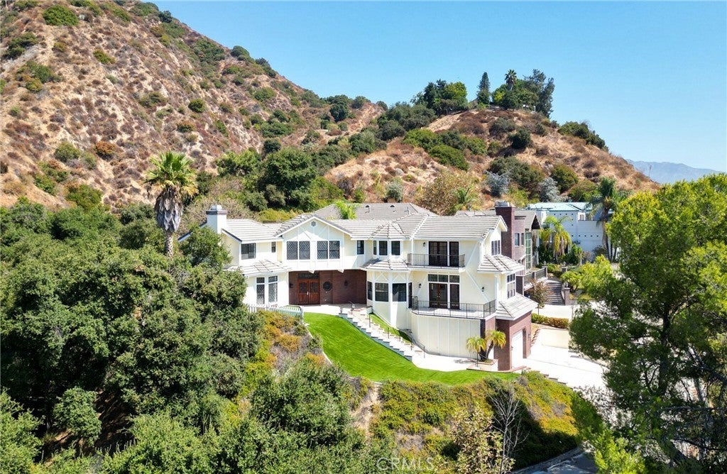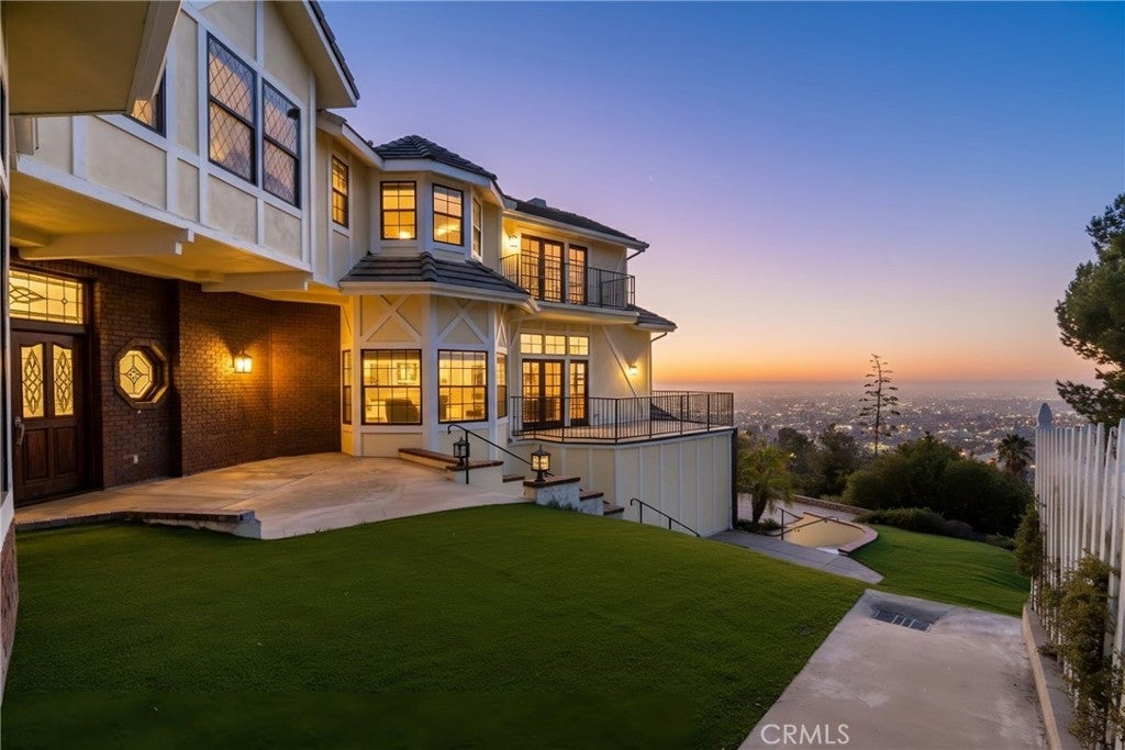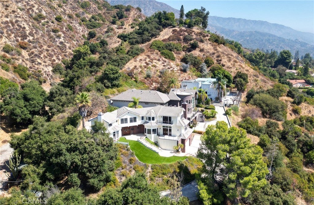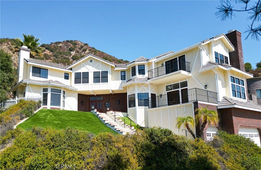 Tucked away in the foothills, this hilltop estate offers breathtaking panoramic views and exceptional privacy. The elegant English Tudor residence features 4 bedrooms and 3.5 bathrooms and has been thoughtfully remodeled throughout. The home showcases a bright, open-concept layout with a seamless family room and kitchen, complemented by an informal dining area and a separate formal dining room. The fully remodeled kitchen features granite countertops, a center island, stainless steel appliances, and refined lighting. Two brand-new air conditioning units provide modern comfort. Special interior highlights include fireplaces in both the living room and family room, laminate flooring, and an oversized laundry room conveniently located near the formal living space. Two private balconies—one off the family room and another off the primary suite—offer picturesque views and indoor-outdoor enjoyment. The private backyard is an entertainer’s retreat, featuring a custom heated pool with waterfall and spa, along with a large built-in BBQ area ideal for gatherings and relaxation. Conveniently located with easy access to freeways, shopping, and dining, this exceptional home blends timeless character with modern upgrades and stunning views.