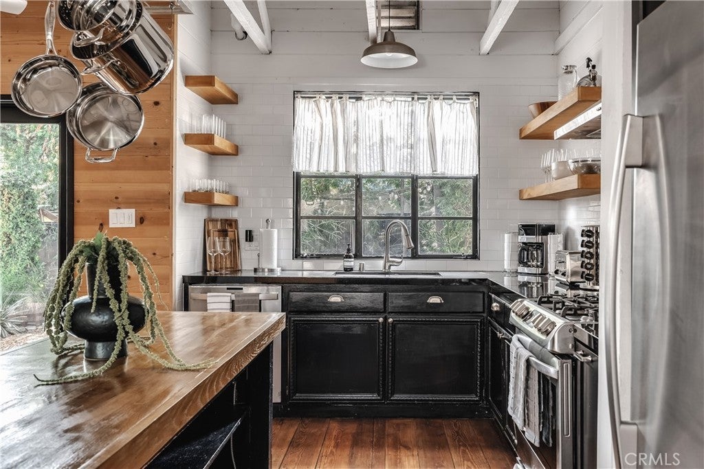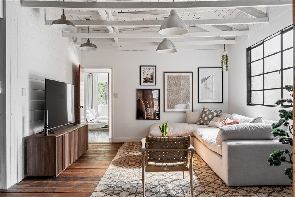 Recently updated, this home features BRAND NEW FURNITURE throughout and comes FULLY FURNISHED with new smart TVs, fresh bed linens, and a charming private backyard. The outdoor area includes a dining table, firepit, and comfortable pagoda sofa seating perfect for relaxing or entertaining. Plus a BONUS Retail space you can use for a hobby, a workspace, office, storefront, storage or more! Inside the main house, you'll find a comfortable living space with an indoor dining table, an in-unit washer and dryer, and a fully equipped kitchen featuring a full-size refrigerator, dishwasher, gas stove, garbage disposal, and microwave. The home includes three smart TVs one in the living room, one in the primary bedroom, and one in the secondary bedroom so everyone can enjoy their own space. Each bedroom offers its own closet and dedicated storage space. This gated property includes a parking spot inside the gate for added convenience and security. Located just minutes from Downtown Los Angeles and the Arts District, the home provides quick access to dining, entertainment, and major freeways. Pets are welcome.