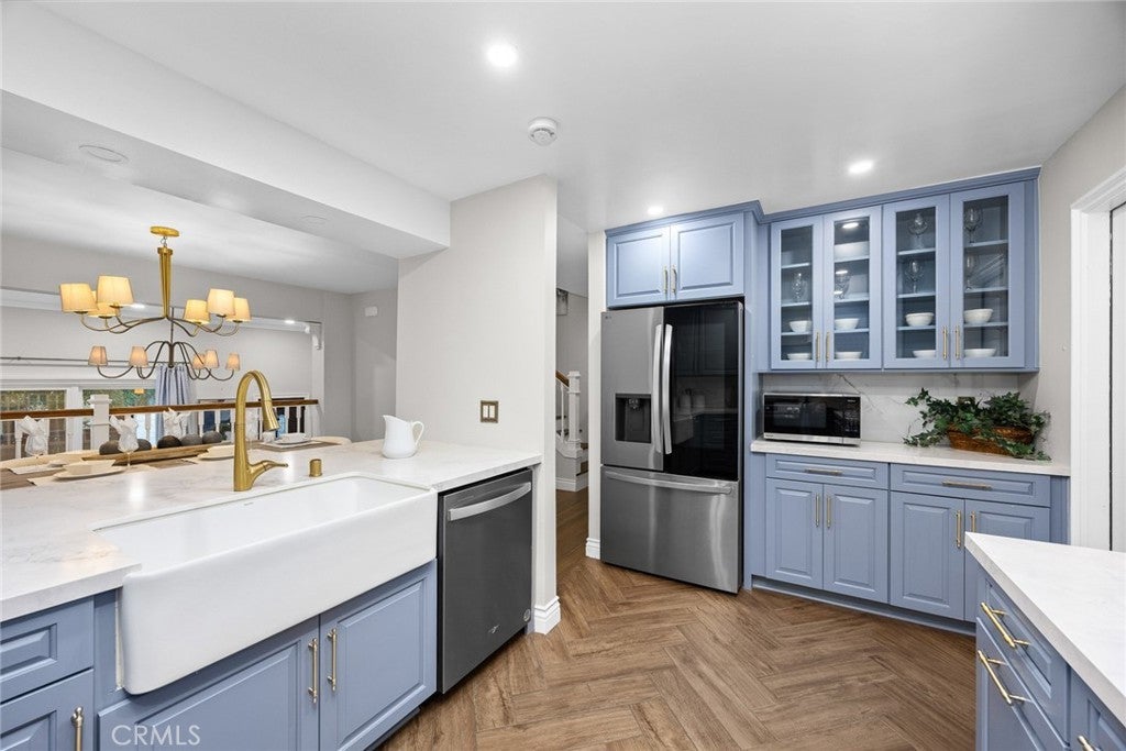 A rare opportunity to own a fully renovated townhouse in one of South Pasadena’s most sought-after neighborhoods. From the moment you arrive, the Mediterranean-inspired front patio—featuring blue tile accents and a mature olive tree—sets the tone for refined yet relaxed living. Inside, soaring ceilings, a statement Pottery Barn chandelier, and engineered wood flooring create an elegant and welcoming ambiance throughout.The thoughtfully designed split-level layout showcases a stunning kitchen newly renovated in 2024, featuring quartz countertops, custom cabinetry, and stainless steel appliances—perfect for both everyday living and entertaining. All 2.5 bathrooms were also fully renovated in 2024, offering contemporary finishes that complement the home’s cohesive and sophisticated design.Upstairs, the vaulted-ceiling primary suite offers a walk-in closet and access to a private oversized patio, creating a peaceful retreat. The generously sized second bedroom provides exceptional flexibility and may offer the potential to be reconfigured into two bedrooms or a bedroom and office, buyer to verify with the City.Located within the prestigious South Pasadena Unified School District and just minutes from shopping, dining, and iconic Pasadena landmarks, this home seamlessly blends style, comfort, and lifestyle.
