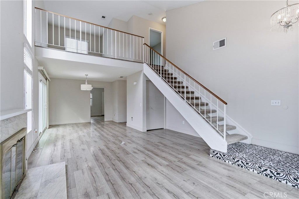 Situated in a sought-after Rancho Cucamonga neighborhood, this tastefully updated residence offers 3 bedrooms, 2.5 bathrooms, and approximately 1,712 square feet of thoughtfully designed living space. Originally built in 1978, the home has been refreshed with modern touches while maintaining a warm and inviting feel. Highlights include vaulted ceilings, abundant natural light, updated flooring, and dual-pane windows throughout. The living room flows seamlessly into the dining area, where a sliding glass door provides convenient access to the side yard and enhances indoor-outdoor living. The remodeled kitchen features quartz countertops, shaker-style cabinetry, stainless steel appliances, and a spacious dining area with sliding doors opening to the backyard. A desirable downstairs bonus room with an adjacent bathroom offers versatile use, ideal for guests, a home office, or additional living space. Upstairs, the primary bedroom is accompanied by two additional bedrooms and a well-appointed hallway bathroom. An upstairs loft provides a flexible area suitable for a workspace, study, or additional lounge. The backyard includes a covered patio and generous outdoor space, well-suited for entertaining or everyday enjoyment, with room for future personalization. Additional features include an indoor laundry area and an attached two-car garage. Conveniently located near schools, parks, hiking trails, shopping at Victoria Gardens, and major freeways, this home offers a blend of functionality, comfort, and a desirable location.