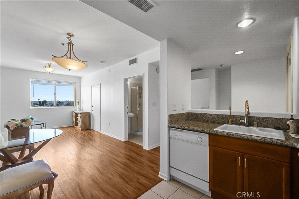 This beautiful 2-bed/2-bath condo sits in the heart of downtown Alhambra, with countless shopping & dining options just an elevator ride away! And even though you’re on Main Street, Unit 318 is situated on the quiet back side of the building, offering lovely mountain views. Inside the front door, you'll find hardwood & tile floors throughout (no carpet here), along with high ceilings and lots of natural light. The open kitchen features granite countertops & well-maintained cabinetry, and it overlooks both the entryway & the dining/living rooms. Each bedroom here features its own bonus space! The primary bedroom includes an ensuite plus a sunny sitting/office area, while the guest bedroom boasts a private balcony with views of the tranquil courtyard & mountains. Residents here enjoy amenities like a tennis court, a well-maintained courtyard, a clubhouse, in-house laundry and more. This unit also comes with two assigned parking spaces in the garage – and the elevator takes you directly up to the third floor. You'll hardly need your car, though, as everything you could need on Main Street (dining, banking, shopping, shipping) is just a few steps from your front door! Costco, Home Depot, Cal State & more are all less than 10 minutes away, and you can hop on the 10 & 710 freeways in no time. No other condo has a better location! Come take a tour of this beautiful & convenient Alhambra home before someone else does!