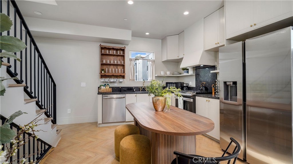 Newer-construction three-bedroom, two-bath residence offering modern design, privacy, and outdoor space in a prime Hollywood location. This three-story home provides a functional layout with excellent separation of living, sleeping, and work-from-home spaces, all within a quiet residential setting. The home is fully furnished and thoughtfully designed with contemporary finishes throughout. The main living area features an open kitchen with stone countertops, stainless-steel appliances, and ample cabinetry, flowing naturally into the living and dining areas. Large windows bring in abundant natural light across all levels. All three bedrooms are well proportioned, complemented by clean modern bathrooms and generous storage. Additional highlights include central heating and air, in-unit washer and dryer, solar power, and quality materials throughout. A private backyard offers rare outdoor space ideal for relaxing, entertaining, or everyday enjoyment—an uncommon feature for this location. Designed for comfort and efficiency, the home delivers the feel of a private residence while maintaining a low-maintenance lifestyle. Located on a residential stretch of Seward Street, the property provides convenient access to major studios, dining, shopping, and nightlife, while remaining removed from busy traffic corridors. Lease details: • Offered furnished • Flexible 6–12 month lease • Available for long-term occupancy A well-designed, turnkey opportunity for those seeking modern living with private outdoor space in one of Hollywood’s most convenient residential pockets.