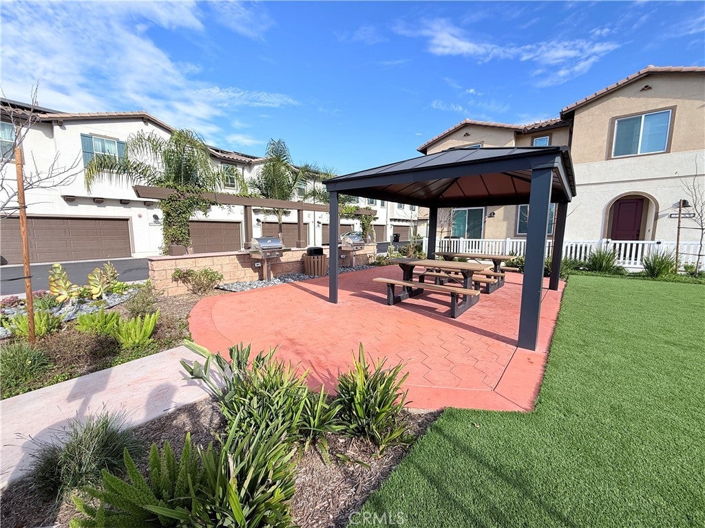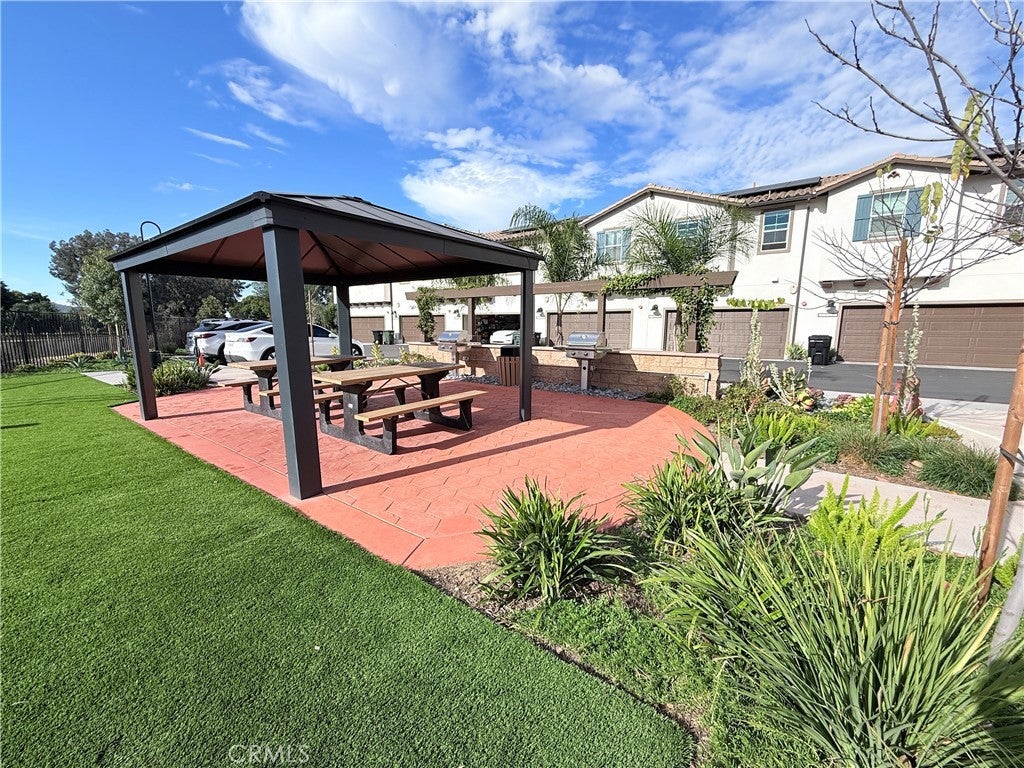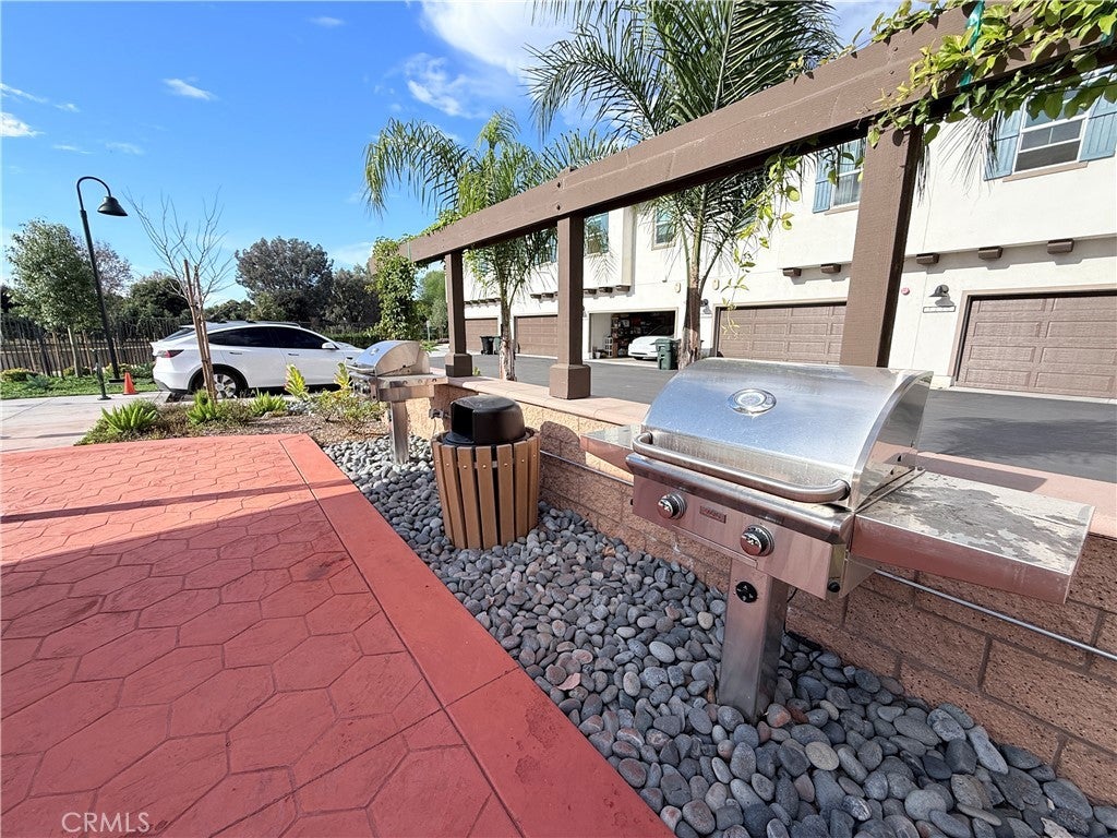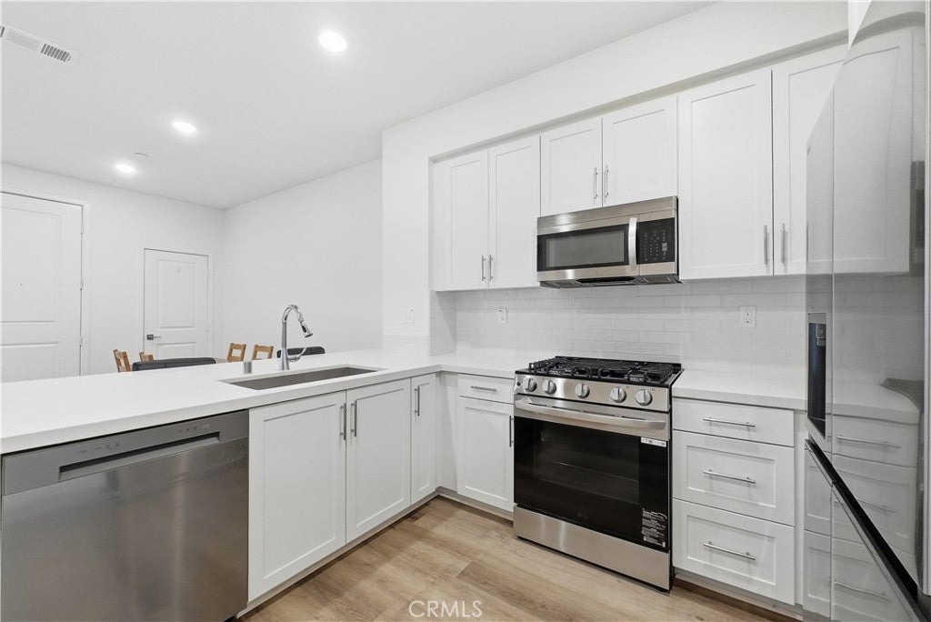 This 2025-built, two-story townhome at The Grove at Merced stands out for its clean layout, efficient use of space, and low-maintenance design. A fully landscaped front patio provides a genuinely usable outdoor area, well-suited for quiet mornings or relaxed evenings. The main level is designed with clarity and flow in mind. The living, dining, and kitchen areas connect naturally, creating an open feel without wasted space. The kitchen features quartz countertops, shaker-style cabinetry, a generous peninsula for seating, and a full suite of appliances, including a refrigerator, range, microwave, and dishwasher. LVP flooring throughout the main floor adds durability while maintaining a modern, streamlined look. A discreet powder room is conveniently positioned for guests without interrupting the living space. Upstairs, all three bedrooms are separated from the main living areas, offering added privacy and a quieter environment. The primary suite is well proportioned, comfortably accommodating full-size furniture, and includes a walk-in closet and an en-suite bath with dual sinks and a walk-in shower. Two additional bedrooms share a full bathroom, while the upstairs laundry area is thoughtfully placed to support everyday routines. The attached 2-car garage provides both parking and storage and is EV-charging ready. Additional features include dual-pane windows, a tankless water heater, and smart-home pre-wiring for a programmable thermostat and video doorbell. Solar panels offer long-term energy efficiency. With an open floor plan, modern finishes, and minimal maintenance requirements, this home is well-suited for buyers seeking a newer construction lifestyle in a convenient West Covina location. Community amenities, including BBQ areas and picnic spaces, further enhance everyday livability.