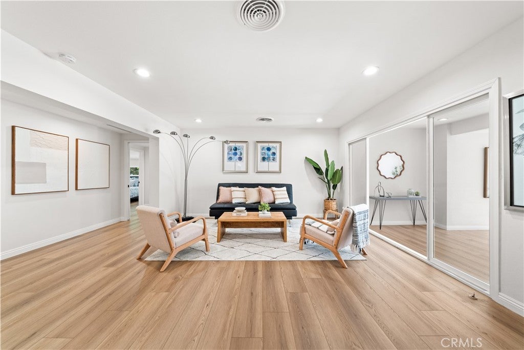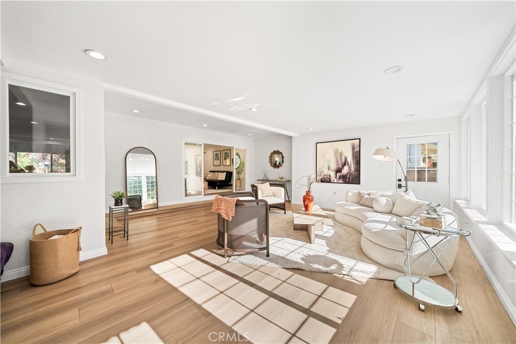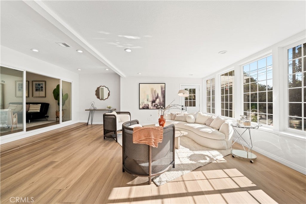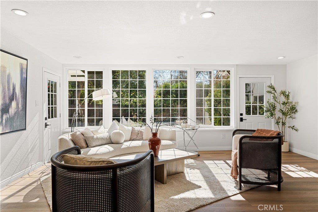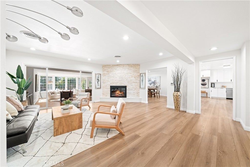 Beautifully remodeled home in a prime Northridge location. This home features a spacious sunroom ideal as an additional living area or home office, separated by elegant glass doors. Two living rooms offer a flexible open layout with abundant natural light from large glass windows. The sunroom overlooks the backyard pool and fruit trees, creating a relaxing and enjoyable atmosphere. Recent upgrades include new paint, new windows, a brand-new kitchen and bathrooms, and an open floor plan. Additional improvements feature a new heater, ceiling lights, plus partial new plumbing and sprinkler system. The remodel was completed in compliance with updated standards. Conveniently located near CSUN, with easy access to the 405 freeway, Costco, shopping, and dining—ideal for both owner-occupants and investors.
