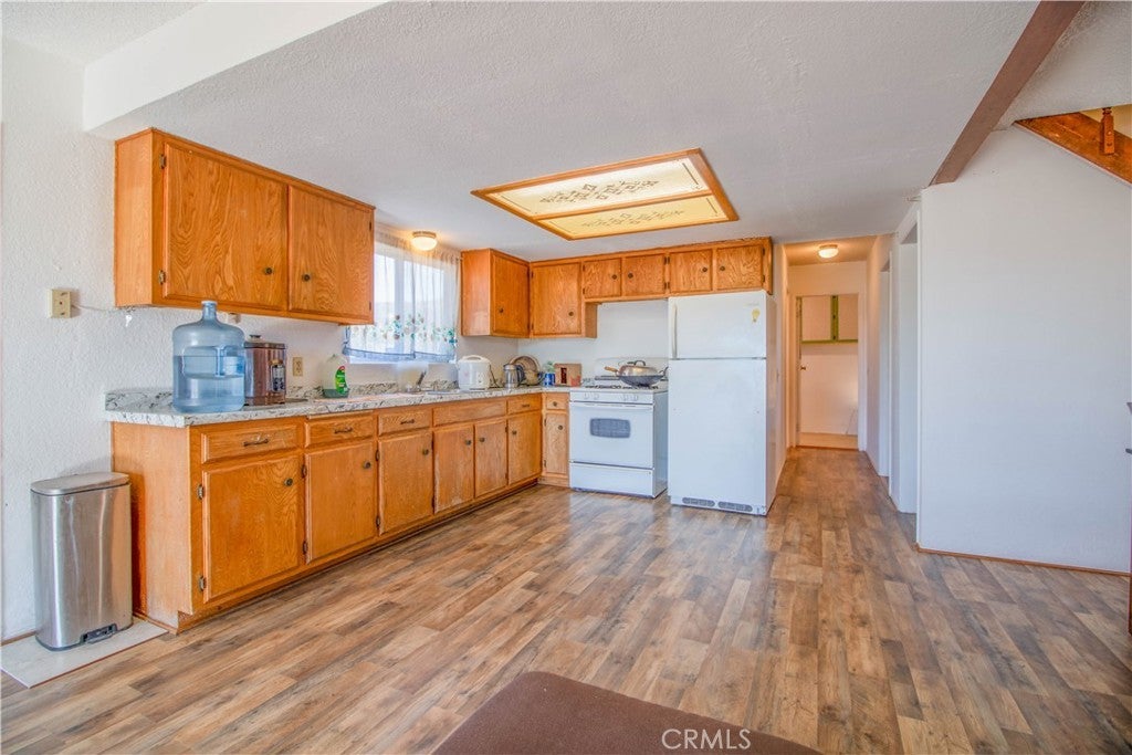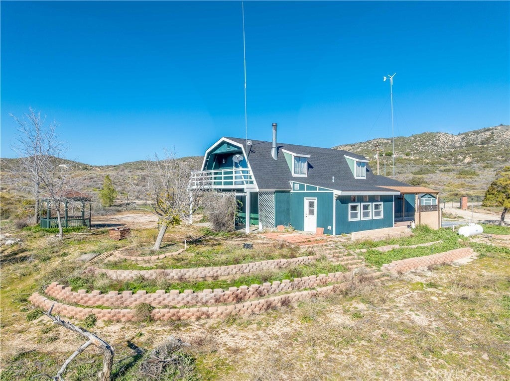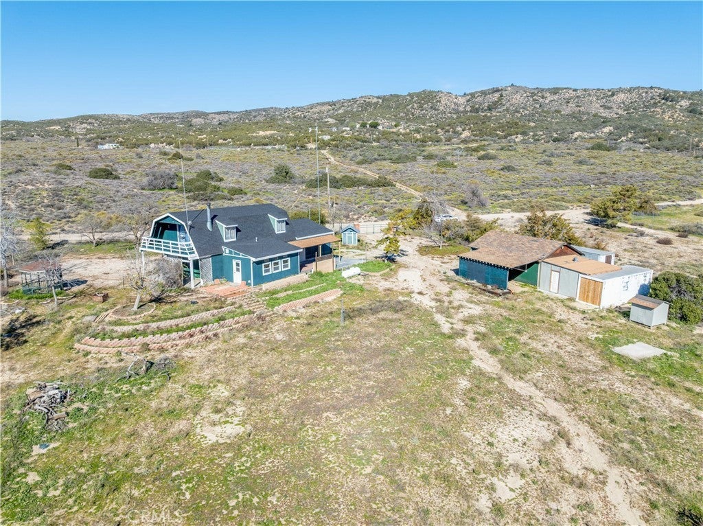 Nice country barn house. It has 3 bedrooms upstairs with a full bathroom. The kitchen, dining area, and living area has a beautiful floating hardwood oak floor in fantastic condition. The downstairs bathroom is built handicap accessible and one of the offices is located right across the hall. The living area has a wood stove and there is an enclosed porch that is entered from the living room but also has entry from the outside. This home has a good roof. The property has a workshop and 2 different storage containers. newly upgarde 200AMP Panel. This home has a lot of potential. Must see to appreciate! Only 45 minutes to Palm Desert or Temecula, 30 minutes to Idyllwild.