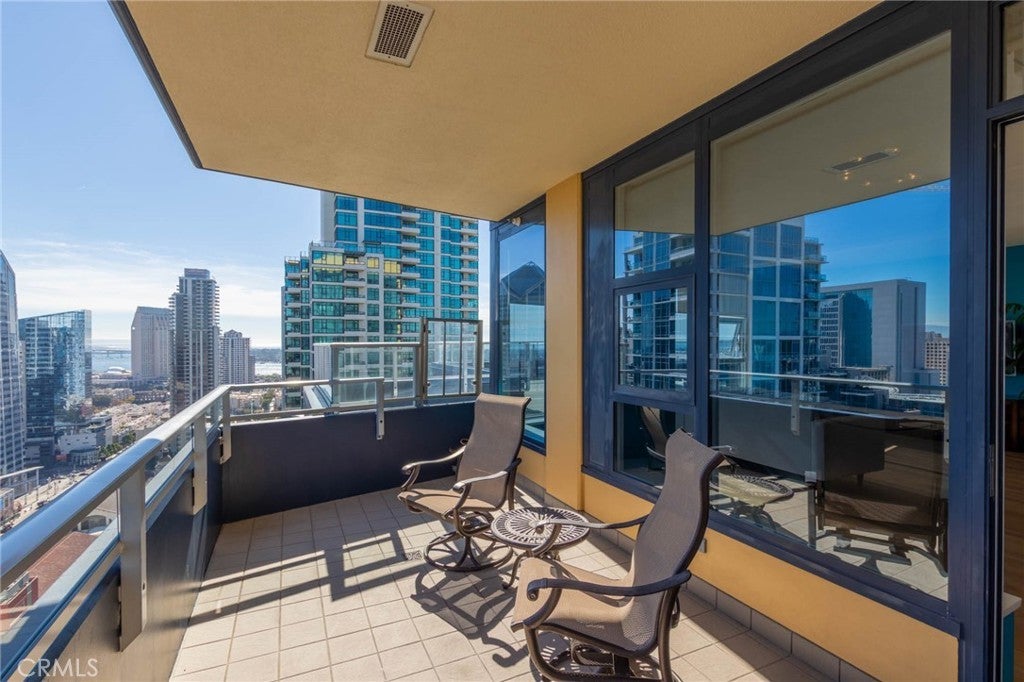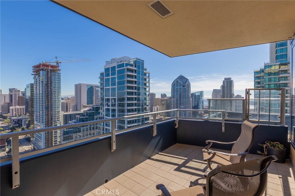 Celebrate refined coastal living in this 29th-floor Bayside by Bosa residence, where ever-changing sunsets, city lights, and sweeping bay views form a breathtaking daily backdrop. Designed with intention and meticulously maintained by the original owners, this 2-bedroom, 2-bath home offers approximately 1,353 square feet of sophisticated living in one of Downtown San Diego’s most iconic luxury towers. The open floor plan is filled with natural light and framed by expansive windows, seamlessly connecting the living and dining areas to the dramatic coastal skyline beyond. A chef-inspired kitchen appointed with Viking appliances, including a Viking refrigerator, anchors the home, while thoughtfully selected finishes and gallery-inspired accent walls elevate the residence into a curated living experience. The primary retreat features a spa-like bath with dual vanity, expansive mirror wall, and an oversized glass-enclosed walk-in shower designed for both comfort and quiet indulgence. Enhancing the home’s functionality is a separate private storage space located within the community’s secured storage area, offering convenient room for seasonal or seldom-used belongings—an increasingly rare convenience in downtown high-rise living. Select furnishings, décor, and artwork may be available for inclusion with the right offer, presenting a unique opportunity to acquire a move-in-ready or fully curated living environment; the art collection consists primarily of official prints along with select original works, contributing to the home’s distinctive character. Bayside by Bosa delivers an exceptional amenity experience including concierge services, 24-hour security, wine tasting room, fitness center, pool and spa, recreation and club rooms, and more, all ideally situated in the Columbia District just steps from the waterfront, Little Italy, Waterfront Park, Seaport Village, dining, shopping, and cultural landmarks—offering a rare balance of urban energy and coastal tranquility. This is more than a home—it’s a statement in elevated downtown living.