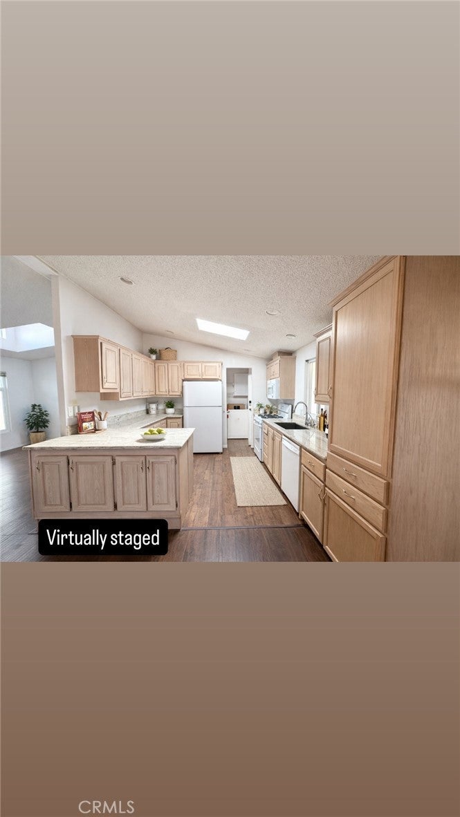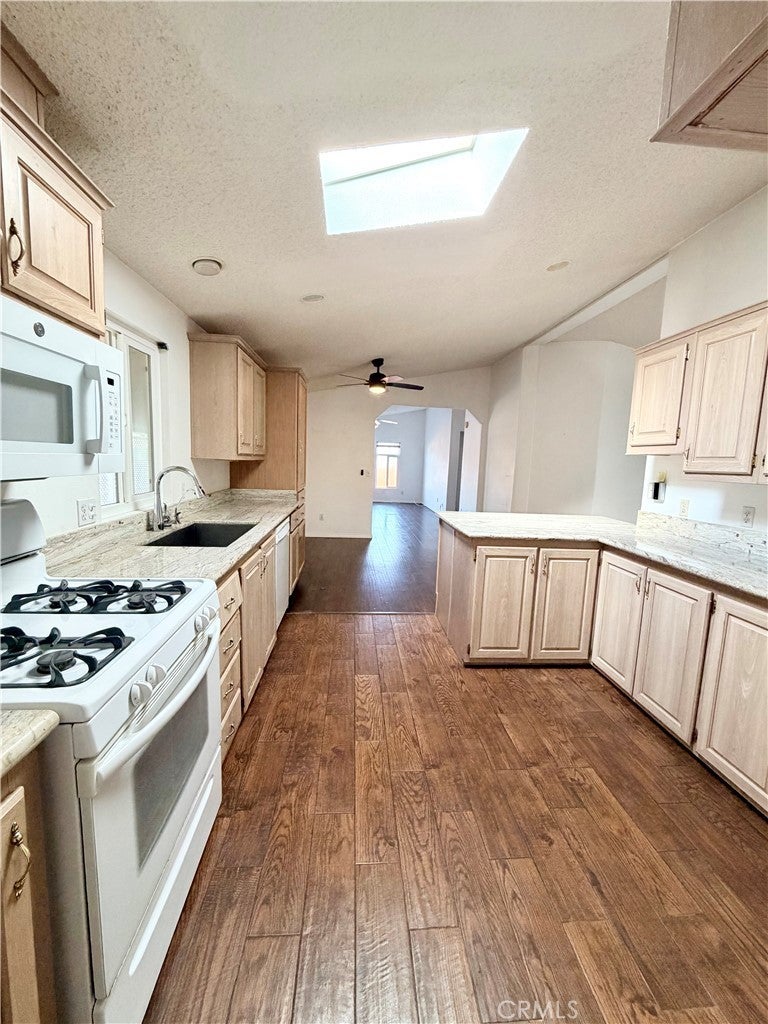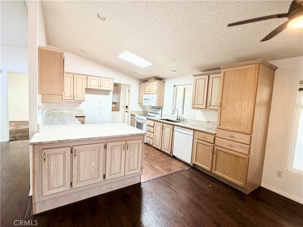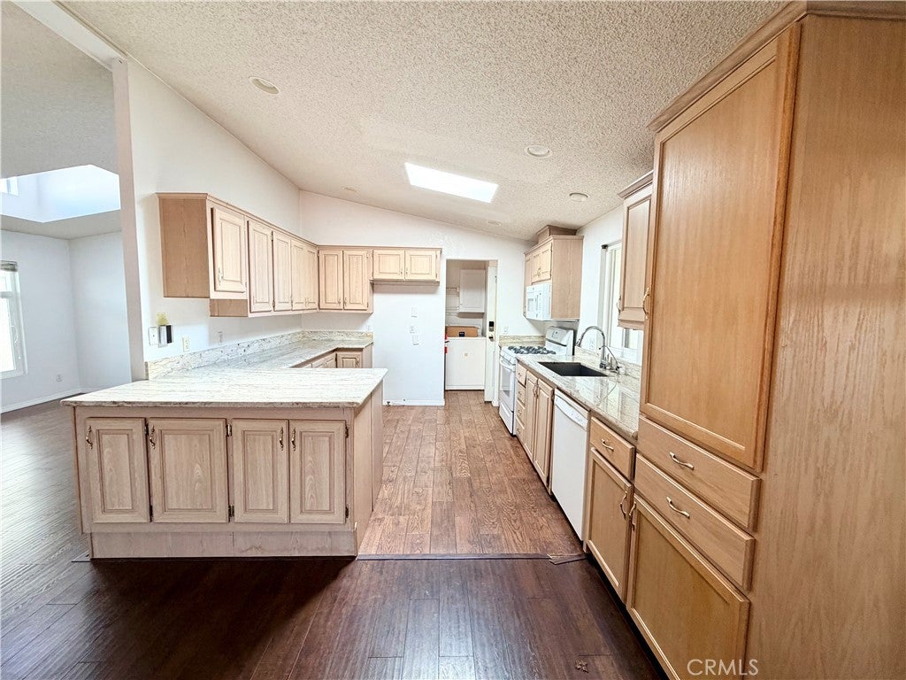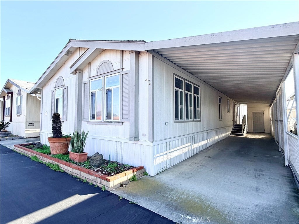 Beach-close living in the desirable 55+ community of Del Mar Estates! This spacious 3 bed / 2 bath home offers a rare split floor plan with 1,347 sq ft of comfortable living space and TWO separate living areas — perfect for guests, hobbies, or relaxing in style. The bright kitchen features granite countertops and flows into an open living space filled with natural light from dual-pane windows and skylights. The oversized primary suite includes a huge bathroom with a walk-in shower and spa-like feel. Central air keeps things cool, and the washer & dryer are conveniently located inside and included. Outside you’ll find two storage sheds and easy-maintenance living, while the community amenities feel like a resort: pool, sauna, gym, clubhouse, pickleball, and bingo nights with neighbors. Located near the 405 and just minutes from Huntington Beach, this home gives you the best of coastal living without the coastal price.