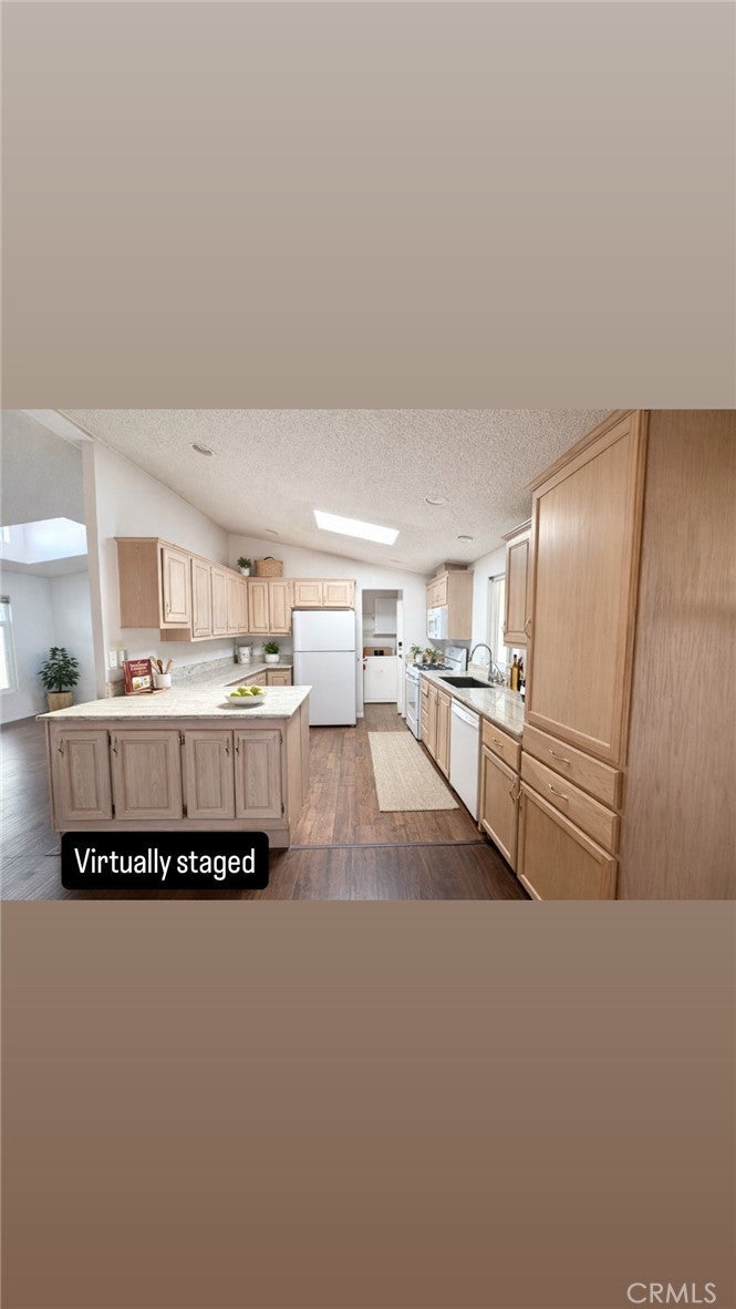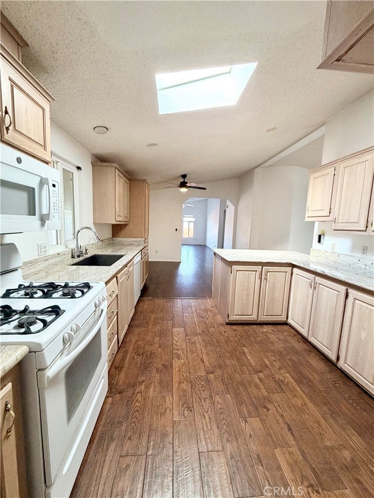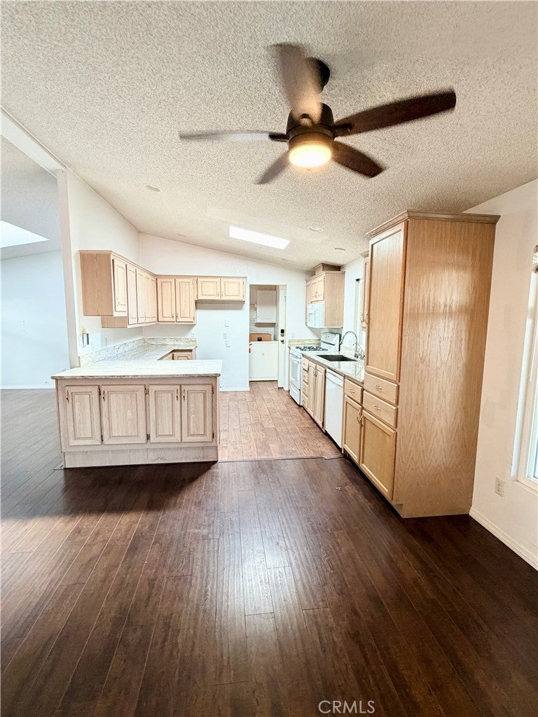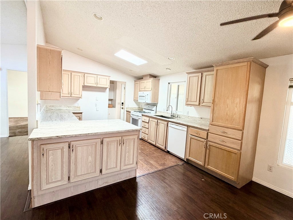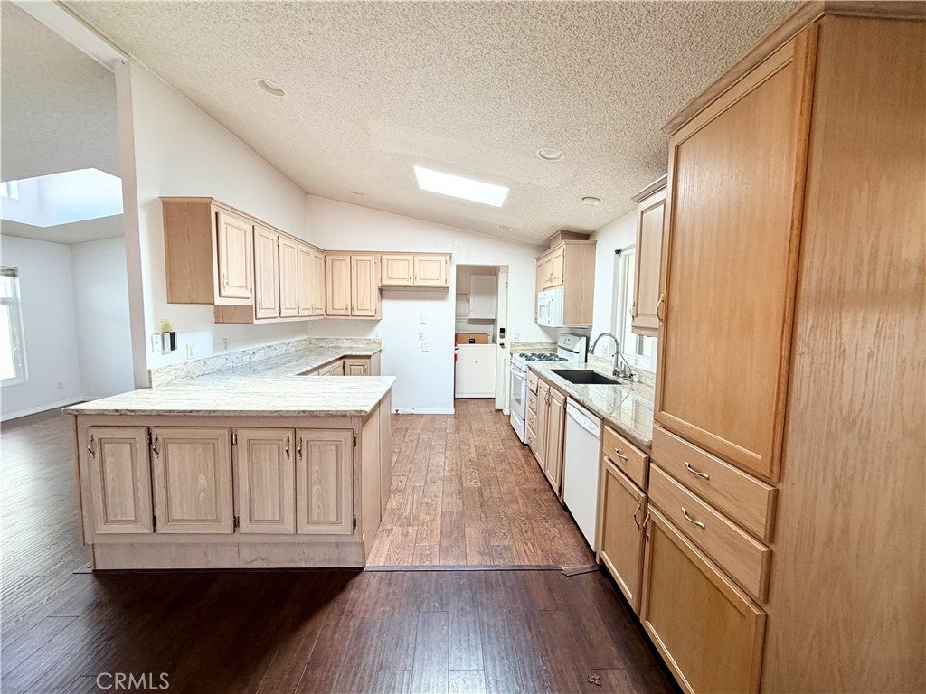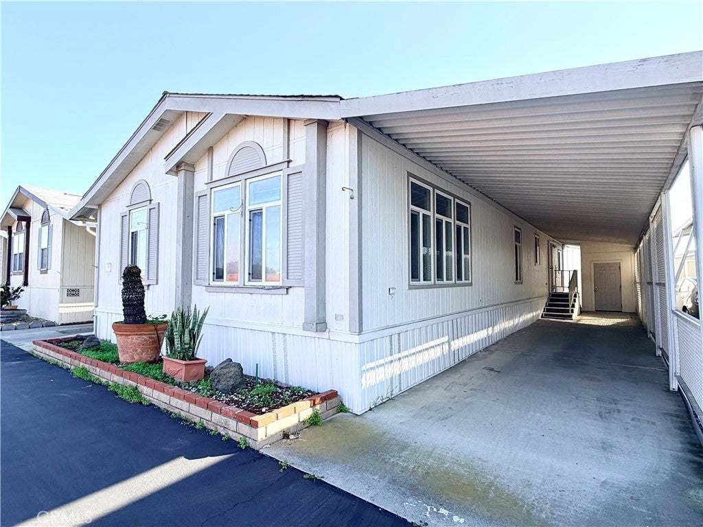 *Back on the market, Buyer did not perform* Beach-close living in the desirable 55+ community of Del Mar Estates! This spacious 3 bed / 2 bath home offers a rare split floor plan with 1,347 sq ft of comfortable living space and TWO separate living areas — perfect for guests, hobbies, or relaxing in style. The bright kitchen features granite countertops and flows into an open living space filled with natural light from dual-pane windows and skylights. The oversized primary suite includes a huge bathroom with a walk-in shower and spa-like feel. Central air keeps things cool, and the washer & dryer are conveniently located inside and included. Outside you’ll find two storage sheds and easy-maintenance living, while the community amenities feel like a resort: pool, sauna, gym, clubhouse, pickleball, and bingo nights with neighbors. Located near the 405 and just minutes from Huntington Beach, this home gives you the best of coastal living without the coastal price. Subject to cancellation of current escrow.