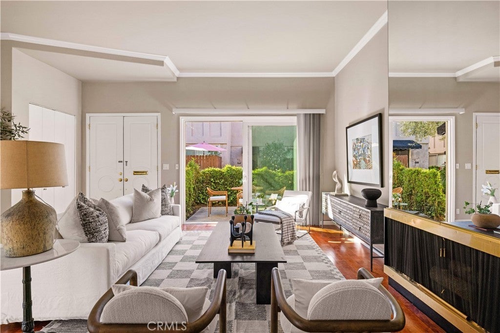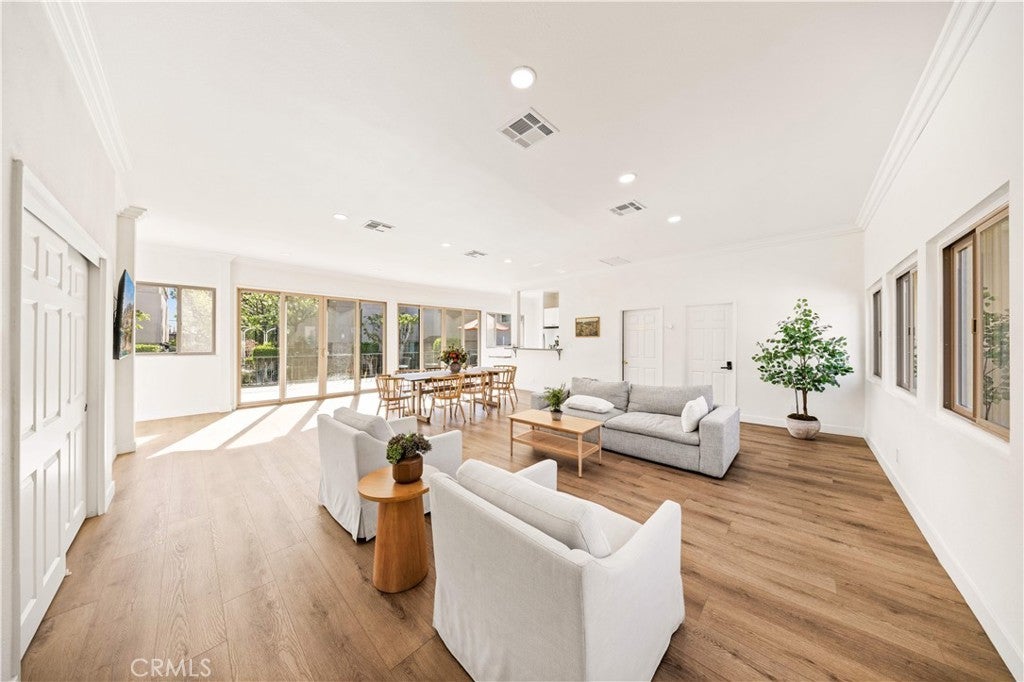In the heart of Arcadia, the long favored by established residents for its balance of convenience, education, and lifestyle, this residence offers a rare blend of architectural comfort and everyday sophistication. The city is known for its top-tier school district, abundant Asian markets, diverse dining scene, and seamless access to major corridors, creating a setting where quality of life and practicality intersect naturally. The home itself spans approximately 1,842 square feet and is thoughtfully designed with three private suites plus a guest powder room, ideal for modern living and long-term flexibility. Upon entry, the living area immediately impresses with soaring ceilings and an abundance of natural light, creating a sense of openness and calm. A full renovation completed in 2017 elevated the interior with new hardwood flooring, dual-pane windows and sliding doors, a redesigned kitchen, and updated bathrooms, newer HVAC system, delivering both aesthetic refinement and functional efficiency. What distinguishes this residence is its exceptional flow and connection to outdoor space. The layout is bright, airy, and intuitive, with multiple skylights placed throughout the home, allowing sunlight to filter in from every angle and creating a tranquil, healing atmosphere. The front courtyard and two of the suites extend directly to balconies and exterior areas, seamlessly blending indoor and outdoor living. From the private rooftop, one can enjoy elevated views of the surrounding community and distant mountain lines—an inviting retreat for morning coffee, sunset reflections, or quiet evenings under the sky. Each suite is well-proportioned, offering privacy, comfort, and versatility for family members, guests, or home office needs. The home’s transparency, ceiling height, and intelligent configuration enhance both daily living and long-term value. Set within a peaceful corner of the community, the property benefits from exceptional privacy and lush landscaping, surrounded by mature trees and greenery. Residents enjoy access to a resort-style pool and clubhouse, further enhancing the lifestyle experience. The environment is calm, refined, and beautifully maintained—an ideal complement to the elegance of the home itself. This is not simply a place to live, but a thoughtfully curated setting where light, space, and location come together in one of Arcadia’s most enduringly desirable environments.