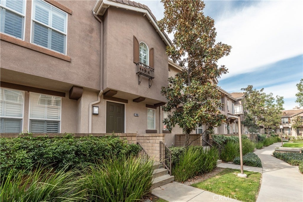 Updated townhome in the desirable Berkeley community of Brea. This light-filled home features an open floor plan with hardwood floors, recessed lighting, plantation shutters, and a cozy gas fireplace in the living room. The remodeled kitchen offers granite countertops, stainless steel appliances, a counter with seating, and a walk-in pantry, with tile flooring extending into the adjoining dining area. An updated powder bath completes the main level. Upstairs are 3 bedrooms, all with carpet and recessed lighting. The primary suite features a vaulted ceiling, walk-in closet, and a beautifully remodeled en-suite bath with dual vanities and a walk-in shower. Two additional bedrooms share a full hallway bath. Quiet interior location with abundant natural light. Direct-access 2-car garage with EV charger. Community amenities include a pool, BBQ area, and guest parking. Conveniently located near Brea Mall, Downtown Brea, parks, trails, freeways, and within the highly regarded Brea Olinda School District. Additional features include central air and heat, plantation shutters throughout, and a water softener.