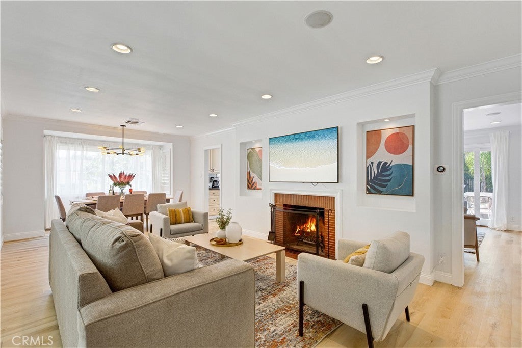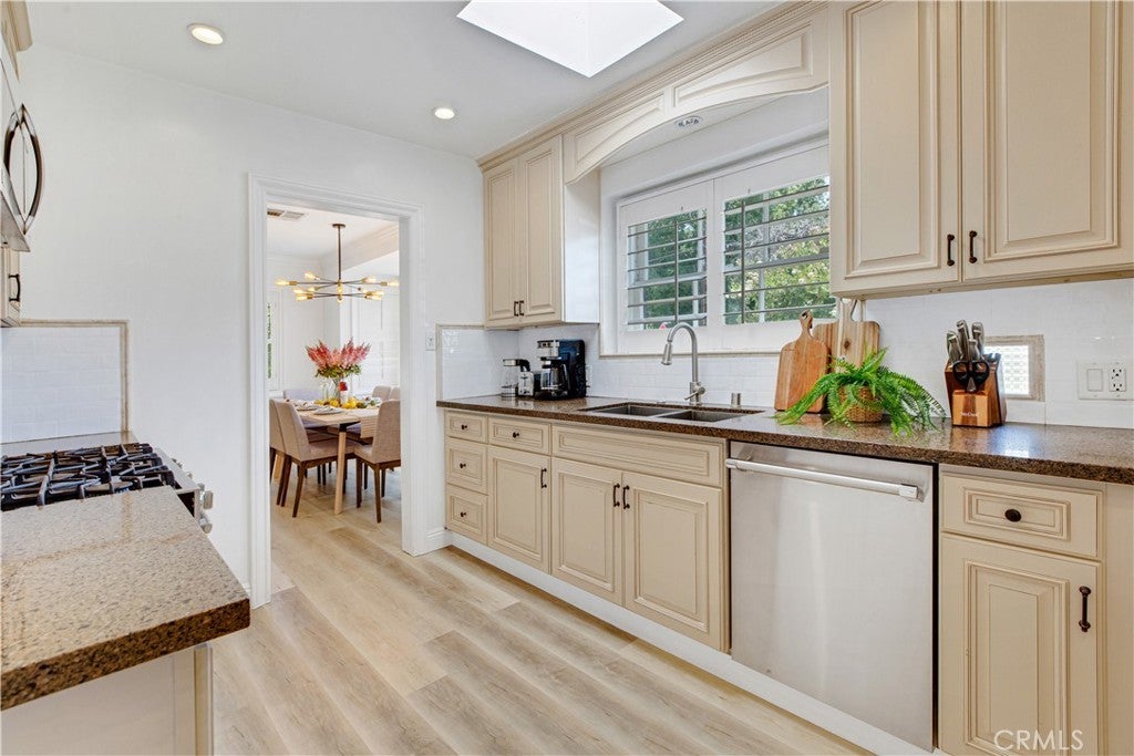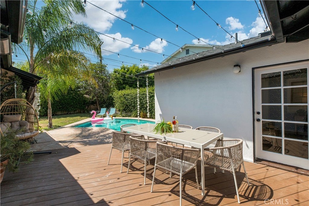 Welcome to this beautifully updated single family Mellenthin "Birdhouse" ranch in prime Sherman Oaks, blending timeless midcentury charm with thoughtful modern upgrades. This 3 bedroom, 3 bathroom home offers 1,811 sqft of living space on a spacious 7,377 sqft lot, featuring two fireplaces, custom plantation shutters, recessed lighting, and wide plank wood flooring throughout. The chef’s kitchen boasts granite countertops, stainless steel appliances, and soft close cabinetry, while the sunlit dining area includes a bay window perfect for entertaining. The inviting family room opens to a private backyard with a sparkling pool, custom mural, wood deck, and hanging chair swing. Additional features include updated bathrooms with designer finishes, dual living areas, an indoor laundry room, attached 2 car garage, gated driveway, EV ready setup, and lush landscaping with citrus trees, all in a prime location near Whole Foods, dining, shopping, local parks, with easy access to freeways, schools, and everyday essentials.