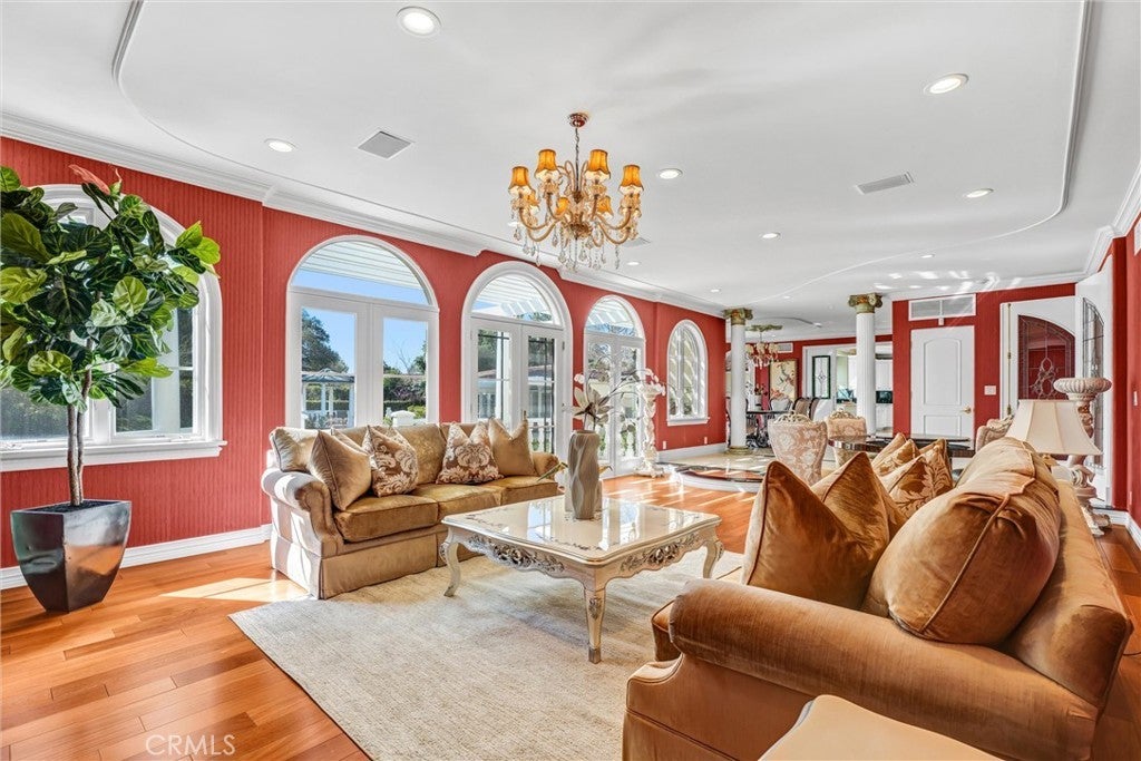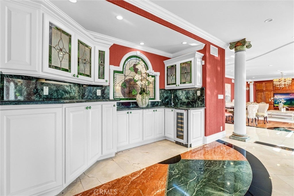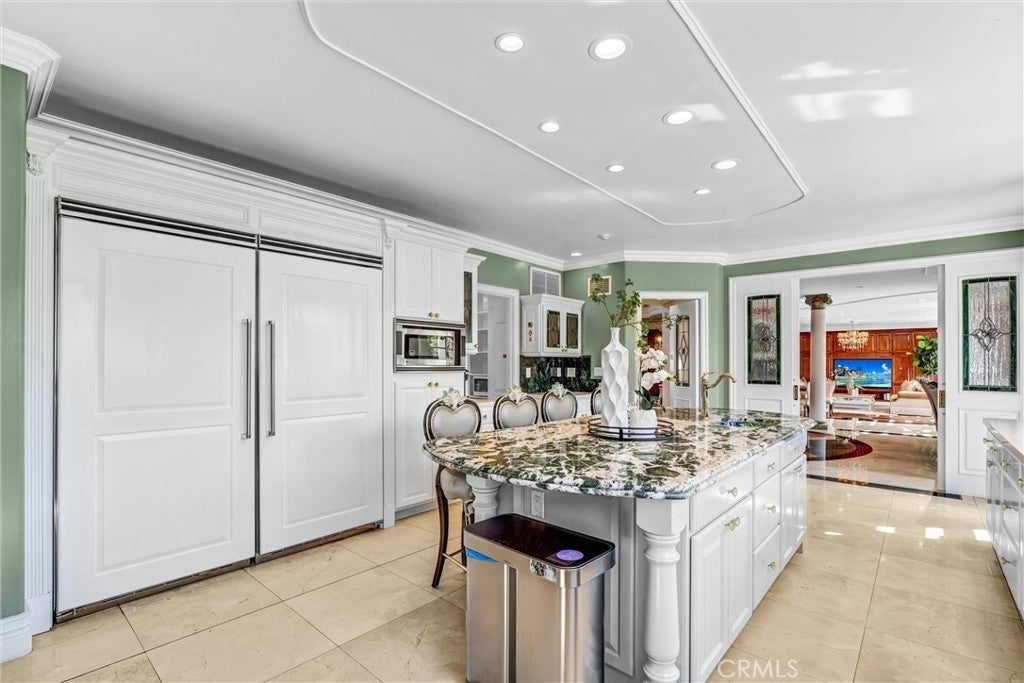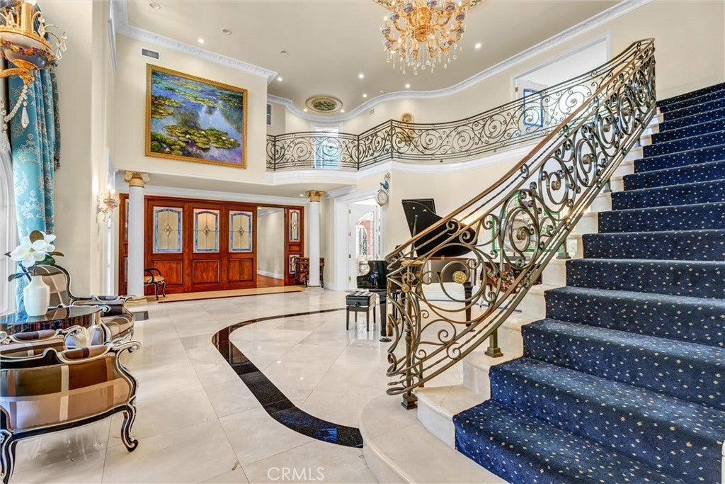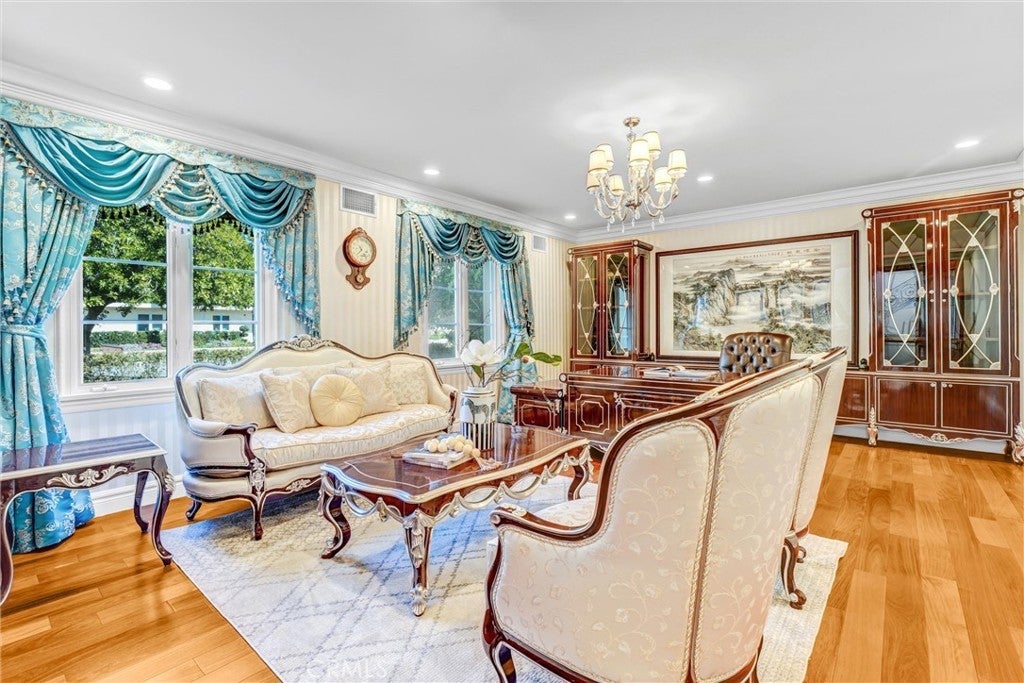 Situated on a prestigious street in prime San Marino, this Italian Renaissance estate showcases an exceptional blend of classic architecture and modern luxury living. Originally built in 1927, rebuilt in 1998, and extensively remodeled in 2016, the residence offers timeless elegance set amidst beautifully landscaped, resort-style grounds. The main residence features 4 bedrooms and 5 bathrooms. A thoughtfully designed floor plan includes a private bedroom suite on the main level, ideal for guests or multigenerational living. Upstairs, the luxurious primary suite offers a private sitting area, spa-inspired bath, and an expansive walk-in closet. Two additional junior suites provide comfort, privacy, and refined accommodations. A grand foyer with soaring ceilings introduces light-filled formal living spaces. The expansive living room is highlighted by an exquisite cloisonné style chandelier, serving as a striking artistic centerpiece that enhances the home’s refined character. A sophisticated office and an inviting family room offer elegant yet comfortable gathering spaces. The family room extends to a spacious terrace, creating effortless indoor-outdoor flow for entertaining, al fresco dining, or enjoying serene garden views. The chef’s kitchen is appointed with premium appliances, custom cabinetry, and a substantial marble island designed for both daily living and elevated entertaining. Enhancing the estate is a separate 444± sq. ft. pool house complete with its own bathroom, ideal for guests, extended family, or private entertaining. An additional garage bay has been thoughtfully converted into a versatile toy and game room. Located near the Huntington Library, Lacy Park, and the charming shops and dining along Lake Avenue, this distinguished residence presents a rare opportunity to experience the very best of San Marino living.