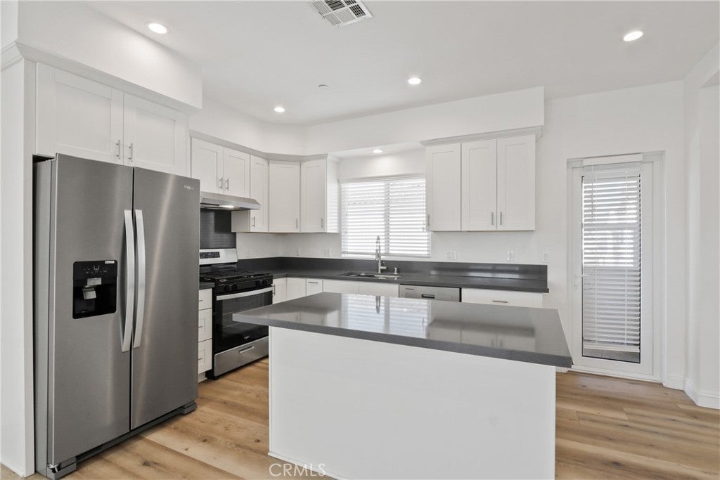 Newer Townhome features 4 bed rooms and 2.5 bath rooms, modern looking, bright and airy; 2 car garage with direct access to home; Laminated wood floor; Large living room; Master bedroom with walk-in closet; Covered patio is a great place to relax; Kitchen features stainless steel appliances, quartz countertops and opens up to dining room and living room. Separate laundry room with washer & dryer. It is conveniently located near shops and restaurants, easy access to Fwy 10 & 605.
