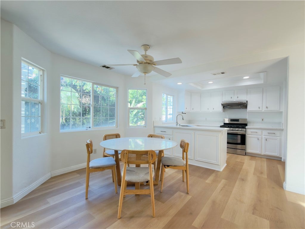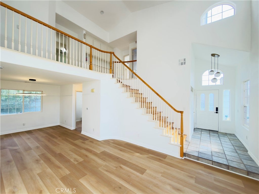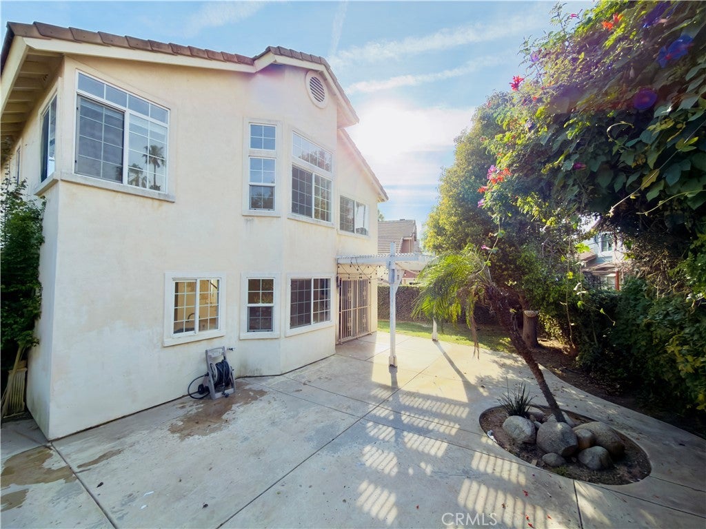 Welcome to 7212 Rancho Rosa Way, Rancho Cucamonga, a beautifully maintained 3-bedroom, 2.5-bath home offering approximately 1,882 sq ft of living space. It is located at the end of a very private cul-de-sac with no neighbors to the east of the property. The home features fresh interior paint throughout and brand-new flooring on the first floor, providing a clean and modern feel. Upon entry, you are greeted by soaring high ceilings and a bright, open living room filled with abundant natural light, creating an inviting first impression. As you move further into the home, the layout flows into a remodeled kitchen that opens to a comfortable family room, making it ideal for both everyday living and entertaining. Upstairs you will find three bedrooms, including a spacious primary suite and two guest bedrooms. The primary bedroom offers a generous layout, while the primary bathroom features a European-style soaking tub and a separate walk-in shower. Both the primary and guest bathrooms are equipped with individual sinks for added convenience. Step outside to a beautifully landscaped backyard filled with a variety of plants and fruit trees, creating a peaceful and picturesque outdoor setting perfect for relaxation or gatherings. The home is also equipped with leased solar panels for enhanced energy efficiency and a 240-volt circuit for a NEMA 14-50 outlet to support electric vehicle charging. Conveniently located near parks, shopping, and dining, this move-in ready home combines comfort, functionality, and charm in a desirable Rancho Cucamonga neighborhood.