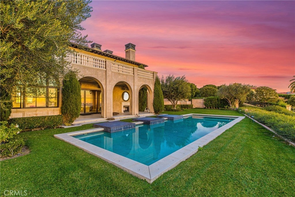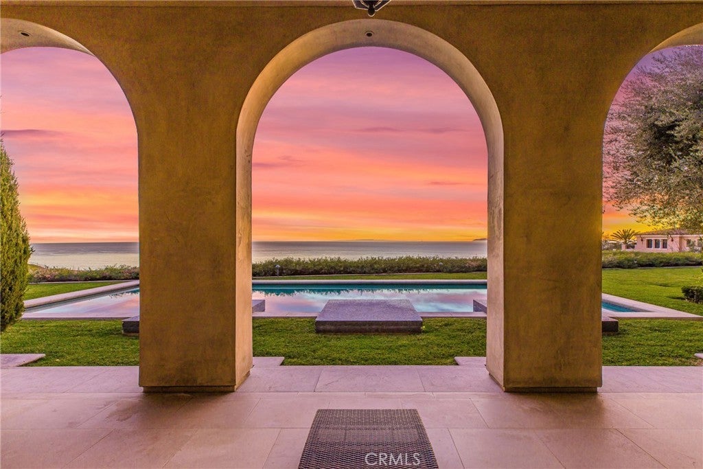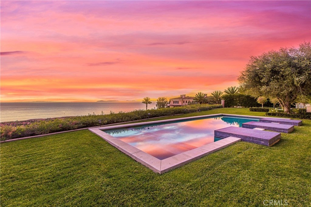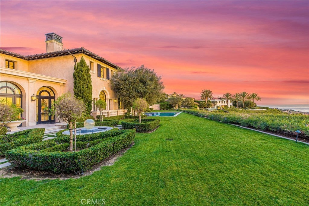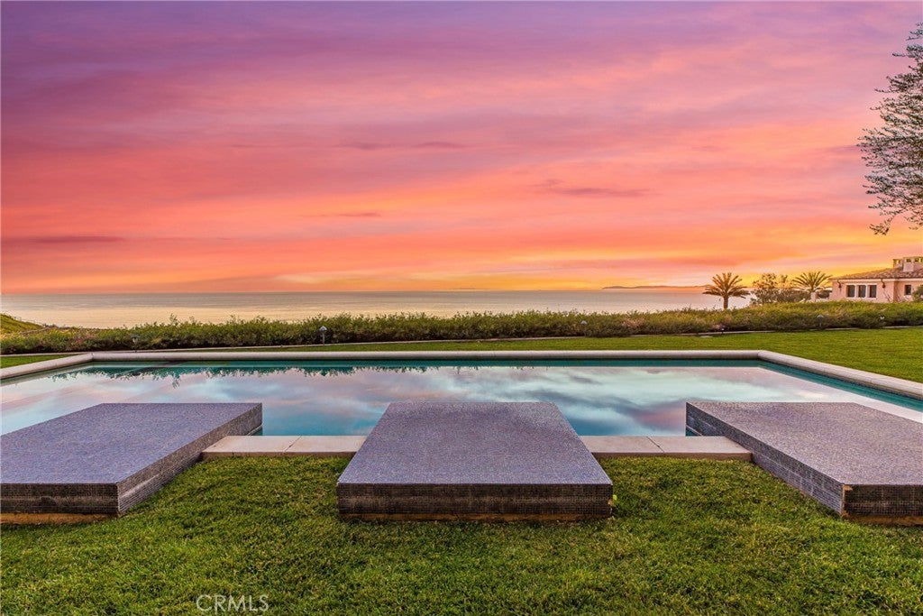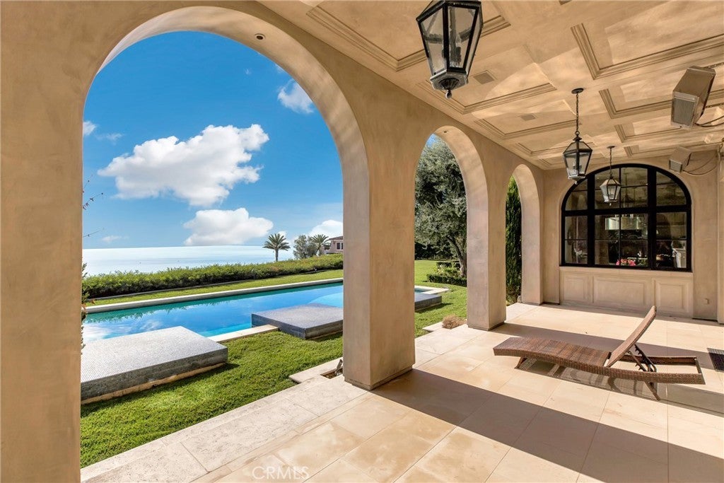 Located in the Pelican Crest community, this south-facing property features views of the Pacific Ocean and Catalina Island. The floor plan includes 7 bedrooms and 10 bathrooms with a mix of contemporary and traditional finishes. The layout offers a main bedroom suite alongside a separate wing containing three en-suite bedrooms and a bonus room. Property features include a subterranean 6-car garage, a home theater, a game room with a wet bar, a fitness room, a wine cellar, and a library. The exterior includes a swimming pool. The property is in close proximity to local golf courses, beaches, dining, and shopping.