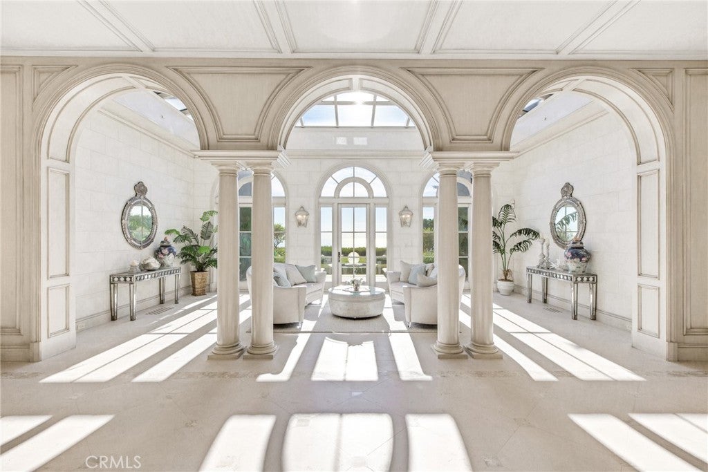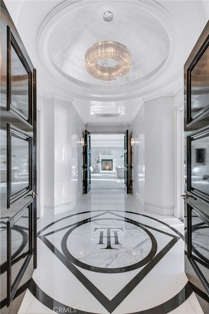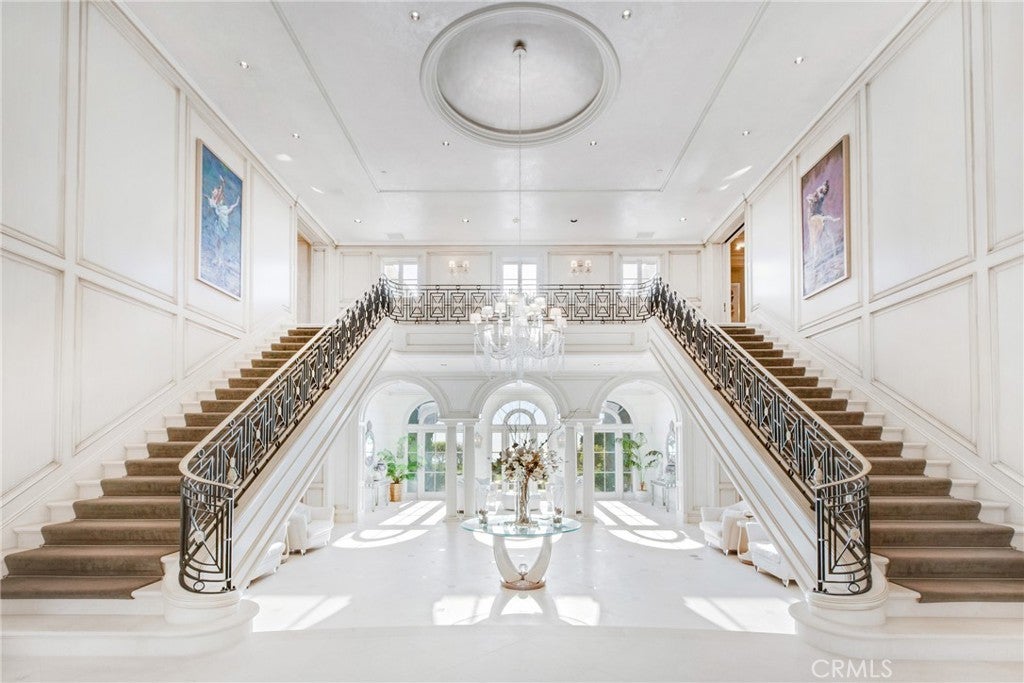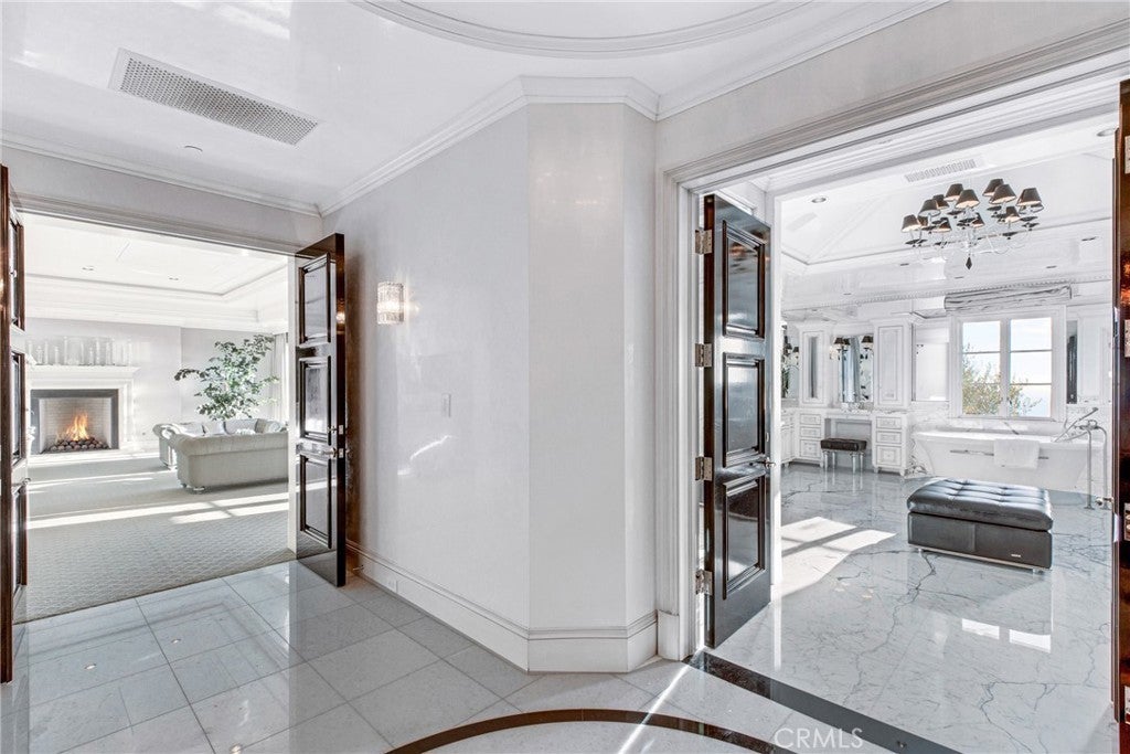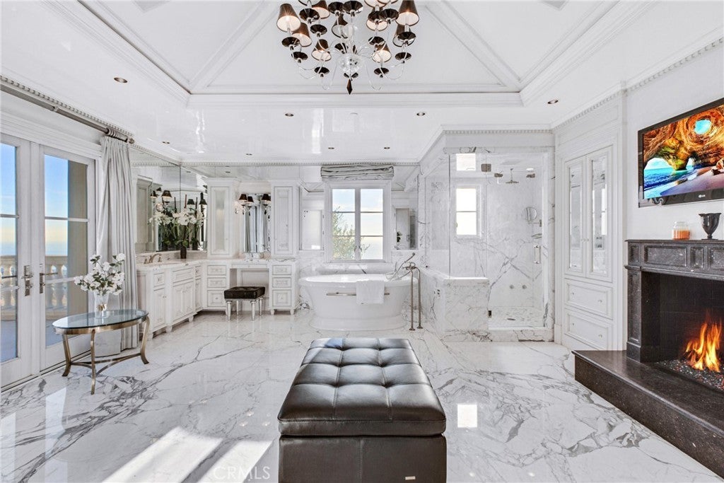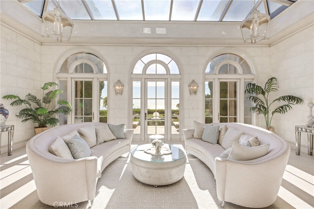 Located in the Pelican Crest community, this south-facing property features views of the Pacific Ocean and Catalina Island. The floor plan includes 7 bedrooms and 10 bathrooms with a mix of contemporary and traditional finishes. The layout offers a main bedroom suite alongside a separate wing containing three en-suite bedrooms and a bonus room. Property features include a subterranean 6-car garage, a home theater, a game room with a wet bar, a fitness room, a wine cellar, and a library. The exterior includes a swimming pool. The property is in close proximity to local golf courses, beaches, dining, and shopping.