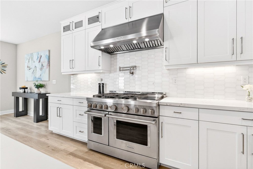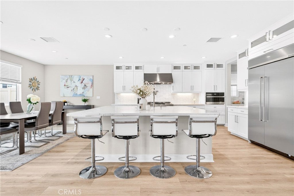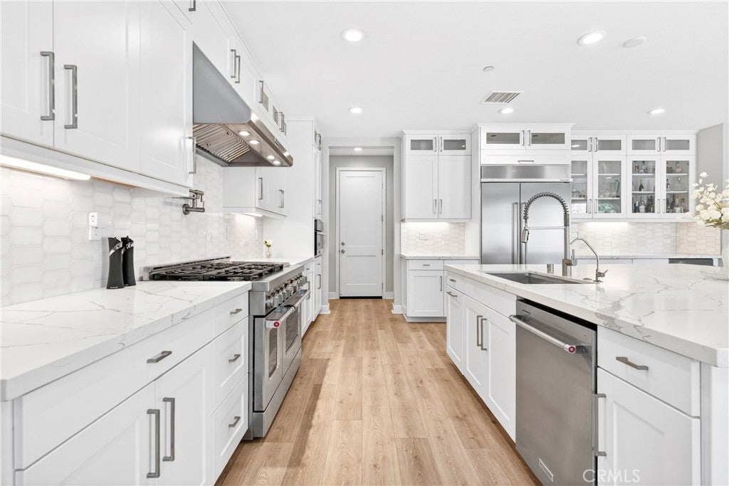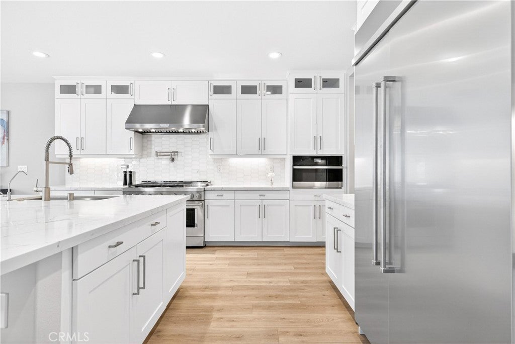 Located in the gated Ponte Vista community adjacent to Rancho Palos Verdes, this beautifully appointed home offers 4 bedrooms, 4 bathrooms, and approximately 3,350 square feet of refined living space on a 5,221 square foot lot. Designed to balance everyday comfort with elevated living, the home showcases spacious interiors, thoughtful functionality, and modern finishes throughout. The expansive open-concept floor plan invites everyday living and effortless entertaining. At the heart of the home is a true chef’s kitchen with an oversized island, ceiling-height cabinetry, quartz countertops, built-in wine fridge, and a chef-caliber double oven range with wall-mounted pot filler. Multi-panel sliding doors open to a covered patio overlooking landscaped pavers and artificial turf, creating a seamless indoor-outdoor flow. The attached garage with direct access to the kitchen adds everyday convenience, while a main-level guest bedroom offers ideal flexibility for visitors or multigenerational living. Upstairs, the primary suite enjoys trail views and is complemented by a spa-like primary bathroom with spacious dual vanities, an oversized walk-in shower, freestanding deep soaking tub, separate toilet room, and a massive walk-in closet. Two additional bedrooms and a spacious loft offer flexibility for a home gym, media room, or upstairs family room or lounge. Additional features include an upstairs laundry room, large walk-in linen closet, and a water softener system for added convenience and comfort. Residents enjoy access to Ponte Vista amenities including security patrol, pool, spa, fitness center, dog park, BBQ area, fire pit, and walking trails, all with a low monthly HOA of $250. Ideally situated just minutes from beaches, dining, shopping, and freeway access, this home is also near the evolving LA Waterfront and West Harbor, where the highly anticipated first phase is expected to debut in 2026 with new dining, shopping, entertainment, and waterfront experiences—offering not only a beautiful home, but also an opportunity to enjoy one of the harbor area’s most exciting growth corridors.