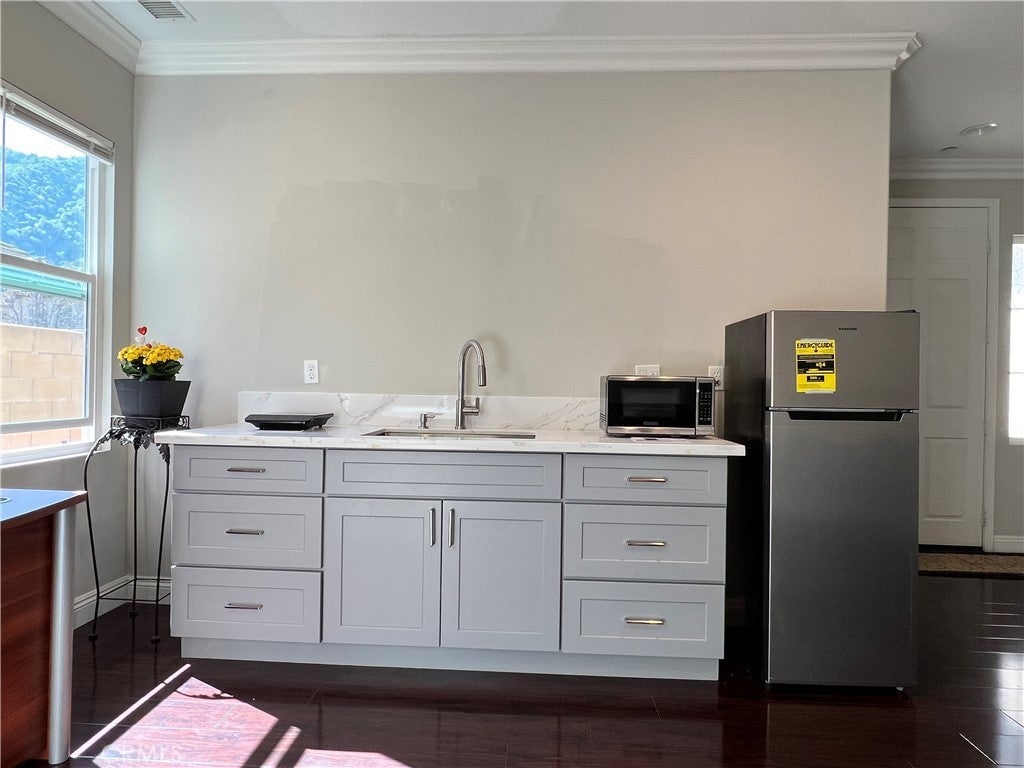 Located within the Mountain Cove Planned Development, private gated community! Owner separate entrance for 1 bedroom + 1 bathroom, wood flooring through-out, simple light kitchen with Brand New cabinet set, New disposal, New Refrigerator, New Microwave. 1 Car Garage. The Mountain Cove community is set against a dramatic foothill backdrop and offers expansive greenbelts, walking paths, playgrounds, picnic areas, and a resort-style pool and spa. The community also hosts multiple events throughout the year, Tree-lined streets and open lawn areas create a peaceful neighborhood environment with close proximity to trails, parks, and nearby commuter routes. Easy access to shopping, 210 and 605 freeways.......