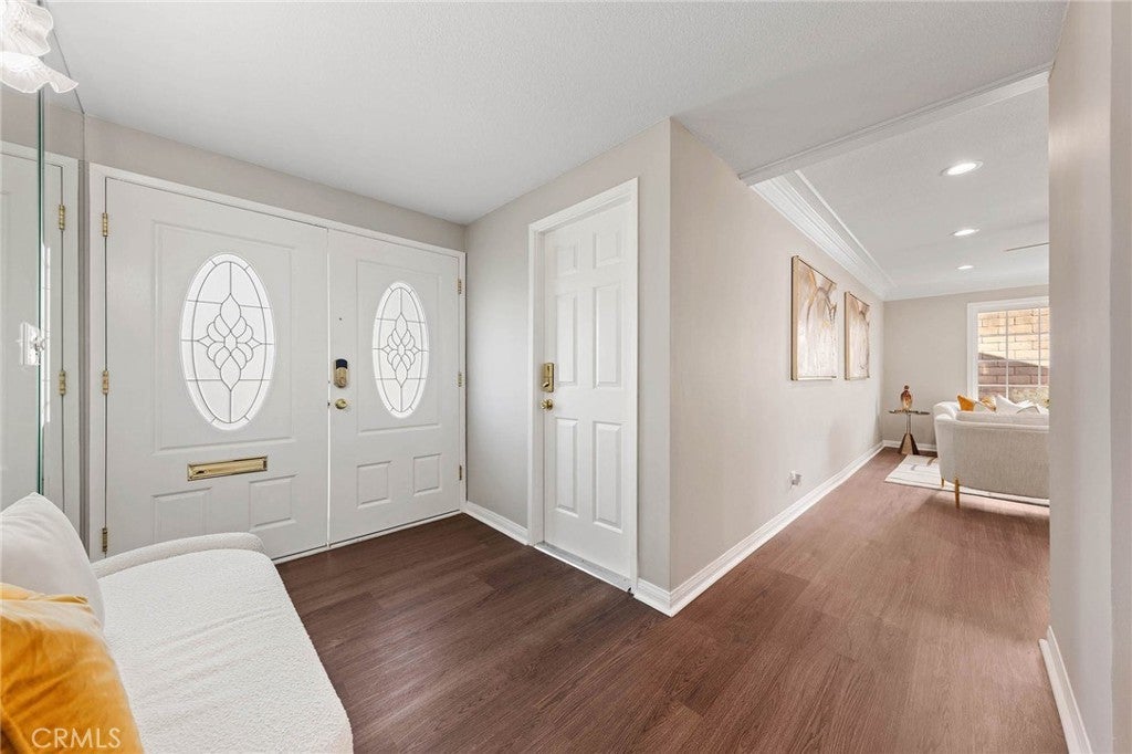 Nestled on a tranquil interior street in the highly sought-after community of West Covina, adjacent to Walnut, this exquisitely renovated south-facing residence offers a rare blend of elegance, comfort, and modern sophistication. A beautifully landscaped front yard and impressive double-door entry create a striking first impression, welcoming you into a light-filled interior defined by refined finishes and a thoughtfully designed floor plan. The expansive living room is bright and inviting, complemented by a ceiling fan for year-round comfort. A separate family room showcases a charming fireplace and opens effortlessly to the backyard through a sliding glass door—creating an ideal setting for seamless indoor-outdoor living and entertaining. The home has been extensively upgraded with contemporary enhancements, including brand-new recessed lighting, elegant crown molding, dual-pane windows, and a central heating and air conditioning system, delivering both style and energy efficiency. The well-appointed kitchen combines functionality with aesthetic appeal, featuring a built-in cooktop, new range hood, and dishwasher. The sink is ideally positioned to overlook the picturesque backyard, bringing in natural light and serene garden views. The residence offers a well-balanced bedroom layout, including two secondary bedrooms sharing a beautifully remodeled full bathroom, and a spacious primary suite with a large closet. Both the primary and guest bathrooms have been renovated with modern finishes. The backyard is a private retreat, offering a generous, rectangular layout with an expansive concrete patio, lush lawn, and multiple mature fruit trees. Additional features include a detached storage shed and block walls, providing enhanced privacy and security. Attached 2 car garage and drive way parking. Perfectly positioned near shopping, dining, and major transportation routes, this exceptional home presents a rare opportunity to own a move-in-ready property in one of the area’s most desirable neighborhoods.