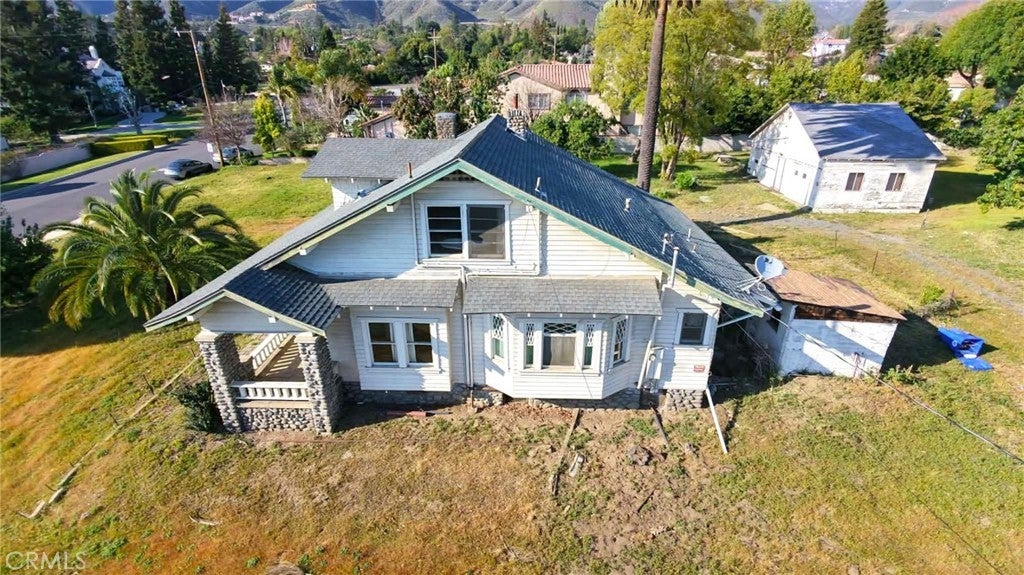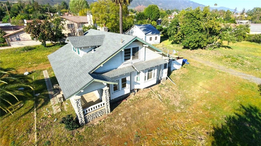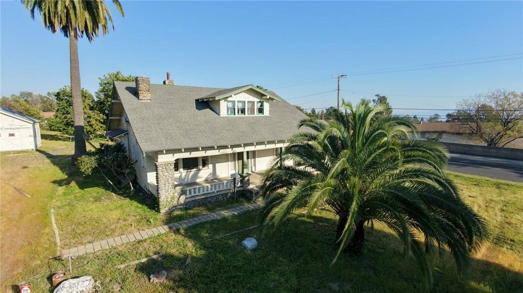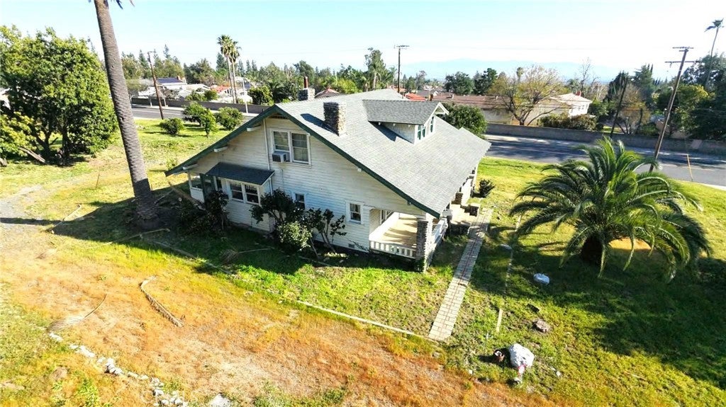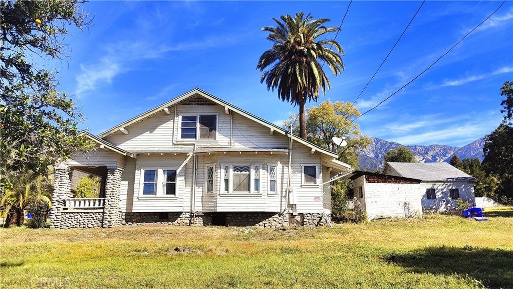Single two story Craftsman Bungalow home constructed in 1912 on an over 1 acre of fully flat all usable corner lot land with plenty of room for ADU, or sub-divide for development. Upland house. Located in highly desired part of San Antonio Heights Community with mountain view and other expensive homes. The home has a covered porch with large columns and natural stone and it is classified as an historic home with historic benefits for homeowner. The main level of the home offers a spacious living room with stone fireplace and built-in bookcase, family room, and good size kitchen with individual laundry room. Large bedroom with window seat and bath, sunroom, study or 3rd bedroom. Upstairs has approximately 800 square feet that can be used an oversized bedroom with a large bathroom and many closet spaces. The front yard, back yard , side yard are surrounded with many mature fruit trees with fruits from Oranges, Avocado, Grapefruit, white Sapote, Persimmon, Loquat trees and 2 driveways. Also there is a detached garage big enough as a workshop or park the cars or convert it to a ADU. Has many potential to build and make this a dream home or homes. One of the rare find in Upland with this type of big size land.