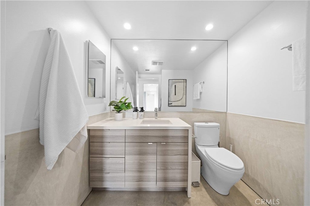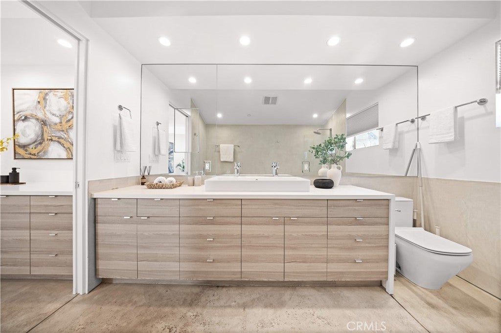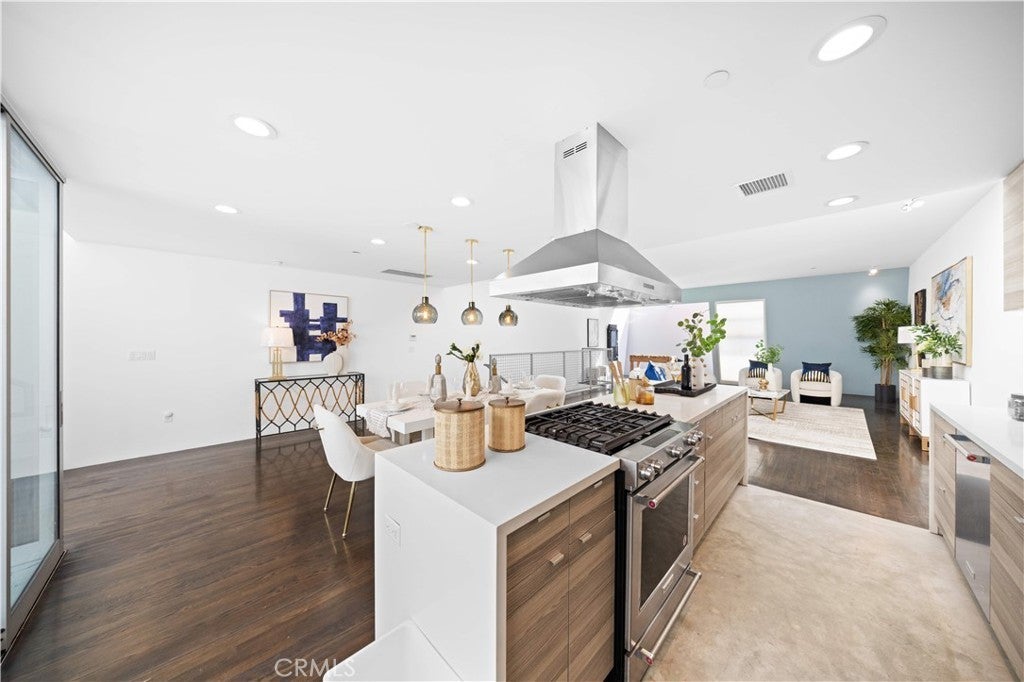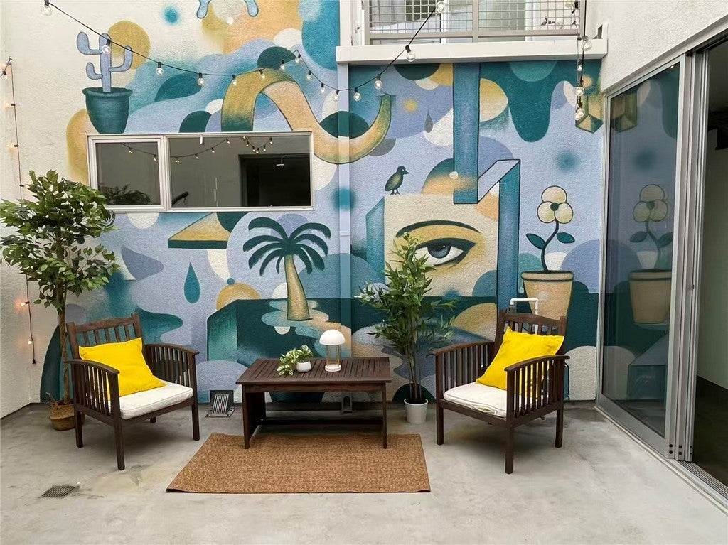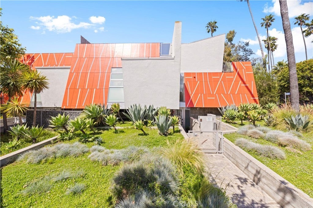 Welcome to this architectural statement home just moments from the sand in the heart of Venice. This modern beachside condo is a true gem, ideally located within walking distance to the beach, vibrant shops, dining, and everything that defines the Venice lifestyle. The striking exterior, highlighted by its bold crimson-toned facade, sets the tone for a residence that blends artistic design with contemporary coastal living. Enter through the ground level where a private garage offers convenience and privacy. Upstairs, the second level features an open-concept layout filled with natural light, enhanced by skylights that create a bright and airy ambiance. At the center of the home is a unique atrium-style courtyard, crowned by a skylight and adorned with a custom mural by a renowned artist—bringing character and a true sense of Venice creativity into the space. Two well-appointed bedrooms and two bathrooms are thoughtfully positioned on this level. The entire third floor is dedicated to the primary suite, offering a peaceful retreat complete with charming windows, abundant natural light, and a private balcony. Just beyond, a spacious rooftop patio awaits—perfectly designed for entertaining, whether hosting intimate evenings or larger gatherings under the stars. Blending bold architecture, indoor-outdoor living, and an unbeatable location, this home offers a rare opportunity to experience stylish coastal living at its finest.